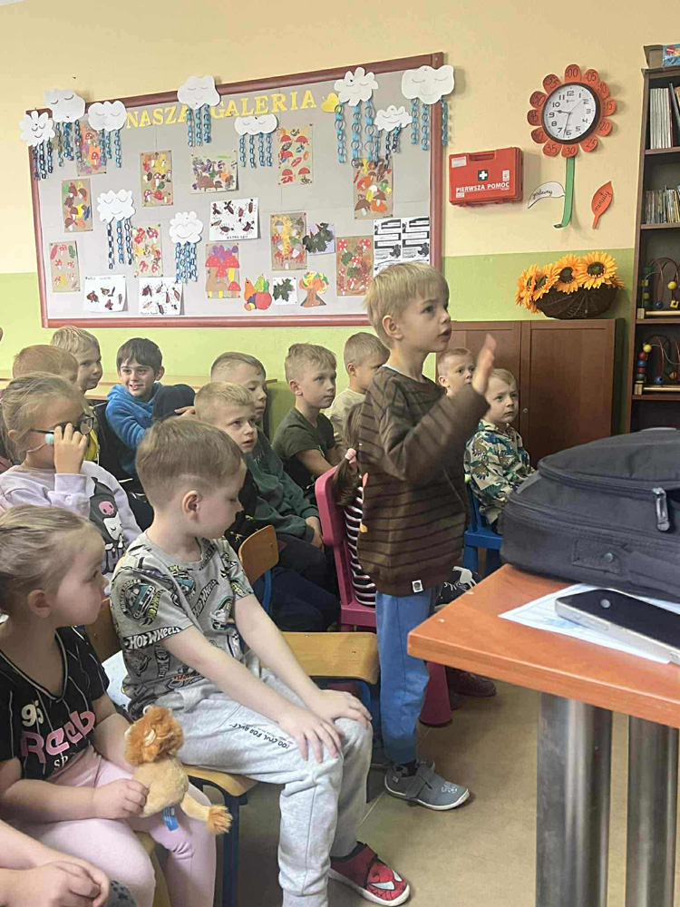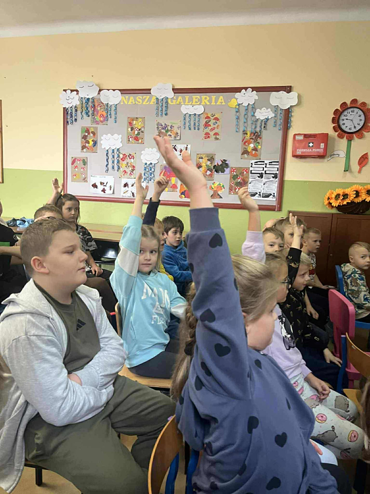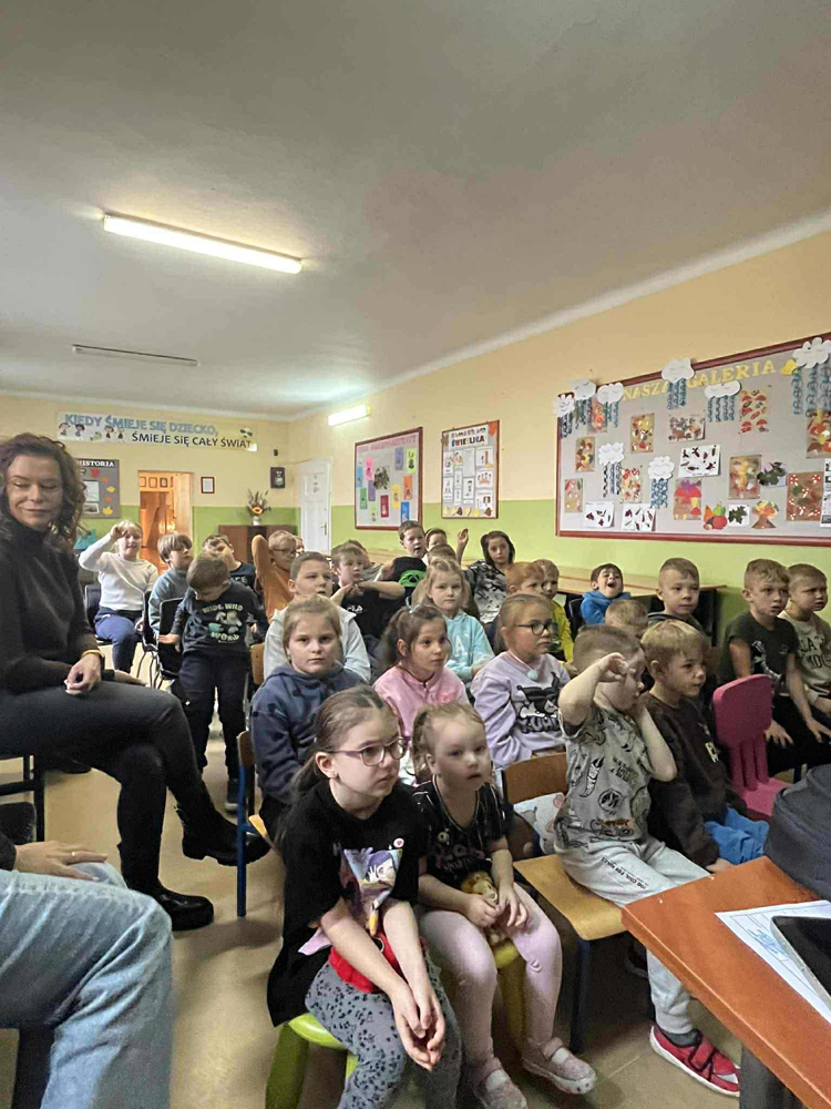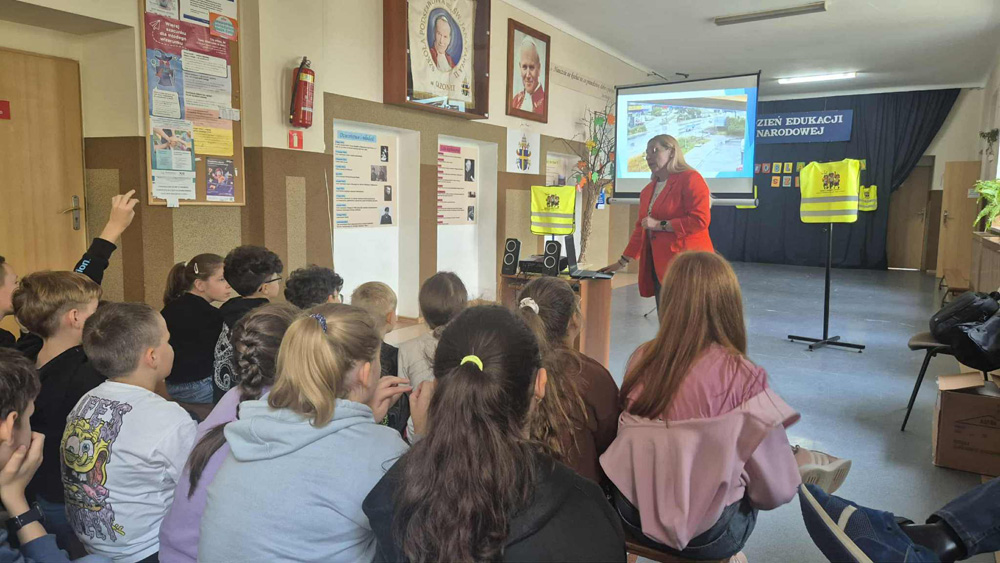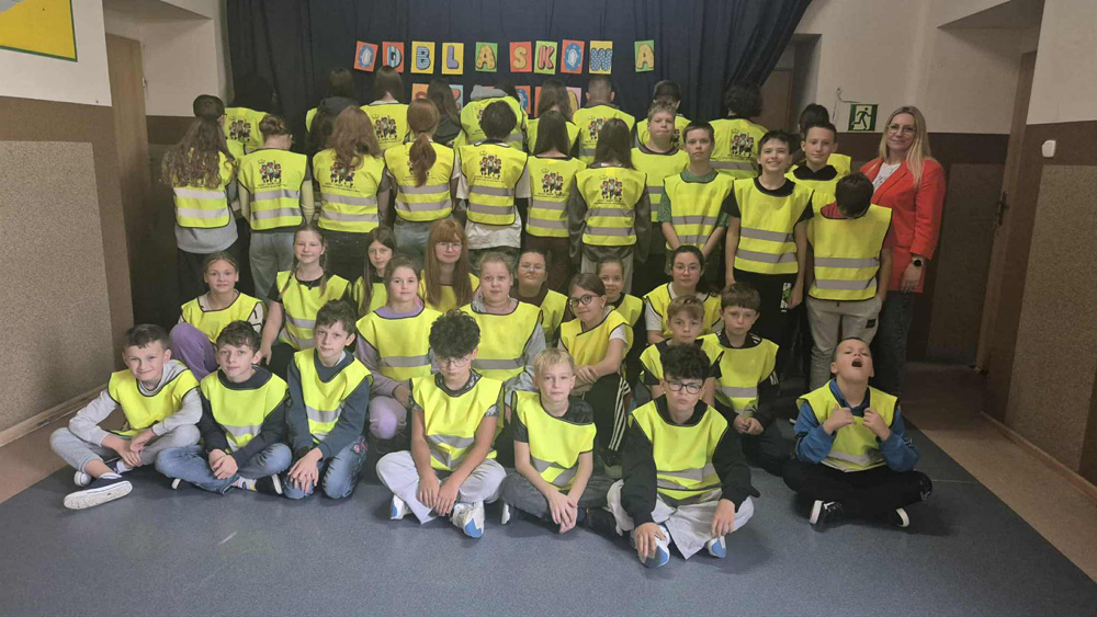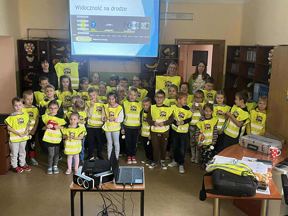 Spotkanie miało bardzo praktyczny charakter — każde dziecko otrzymało kamizelkę odblaskową oraz odblask, które mają zwiększyć ich widoczność na drodze, zwłaszcza po zmroku. Uczniowie aktywnie uczestniczyli w zajęciach, zadawali pytania i dzielili się swoimi doświadczeniami. Wydarzenie było cenną lekcją odpowiedzialności i świadomego zachowania w ruchu drogowym