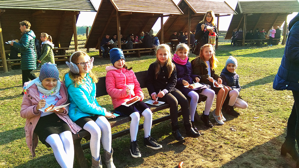 Po występie, uczniowie udali się na posiłek - smażona kiełbaska, grochówka i gorąca herbata pozwoliły zregenerować siły.