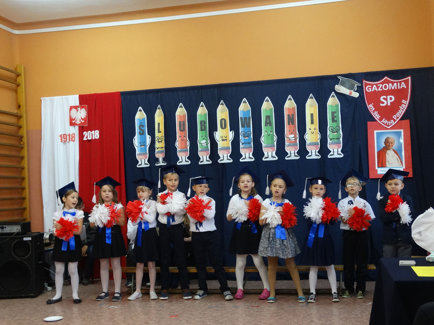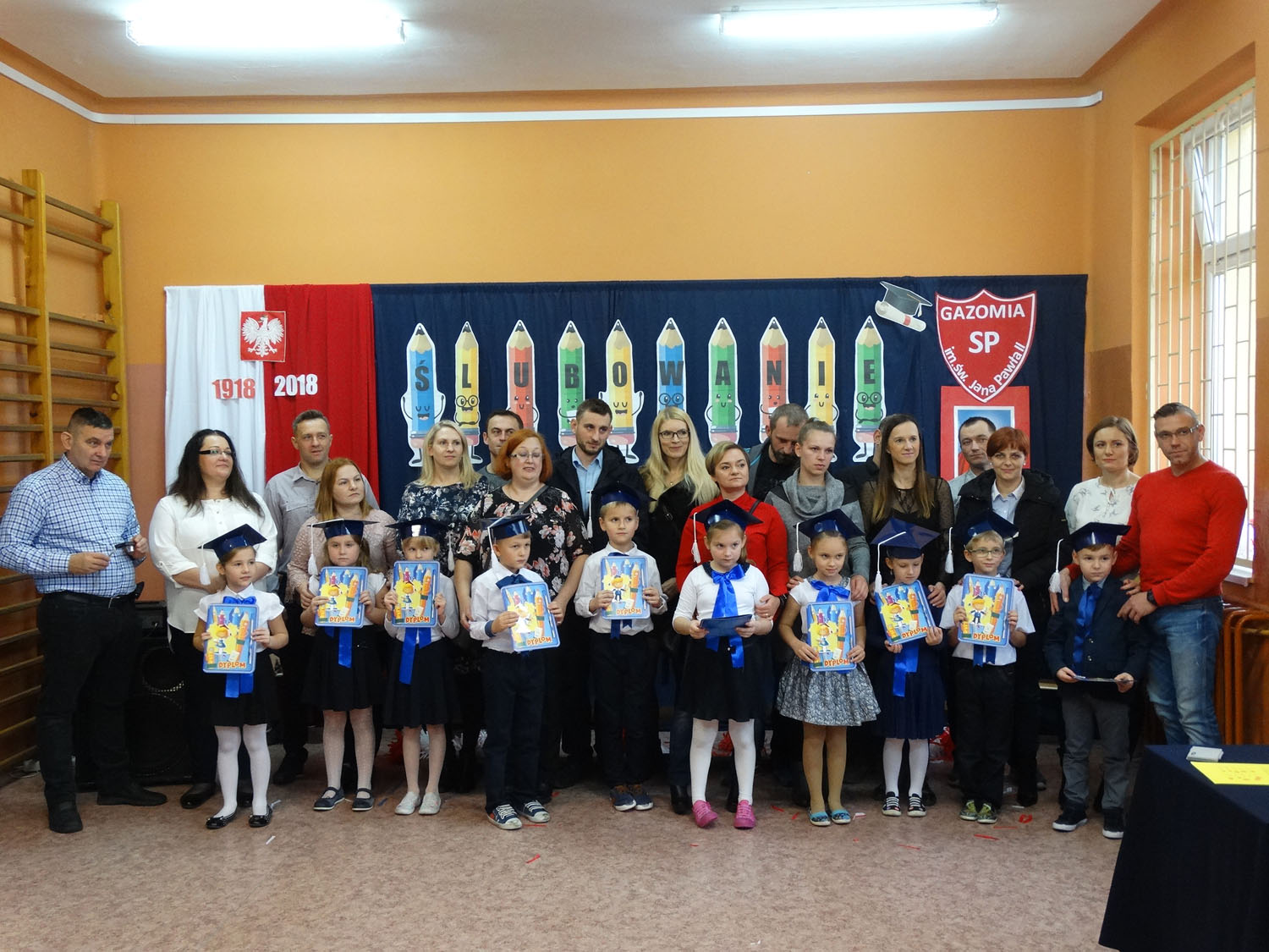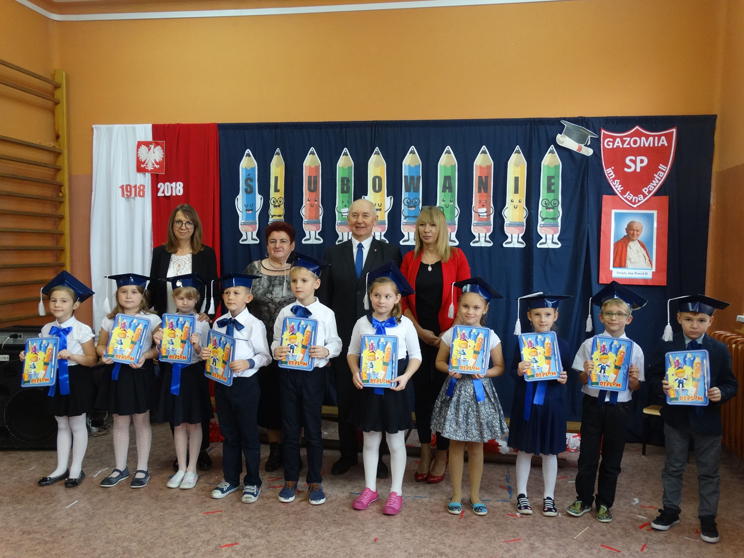 W ubiegłym tygodniu w szkole Podstawowej im. św. Jana Pawła II w Gazomi uczniowie złożyli uroczyste ślubowanie oraz zostali pasowani na uczniów pierwszej klasy. Występom przyglądali się zaproszeni goście: Pan Marceli Piekarek - Wójt Gminy Moszczenica, Pani Marianna Zielonka - Radna Gminy Moszczenica, Pani Aneta Piotrowska – dyrektor szkoły rodzice, nauczyciele oraz koledzy ze starszych klas.