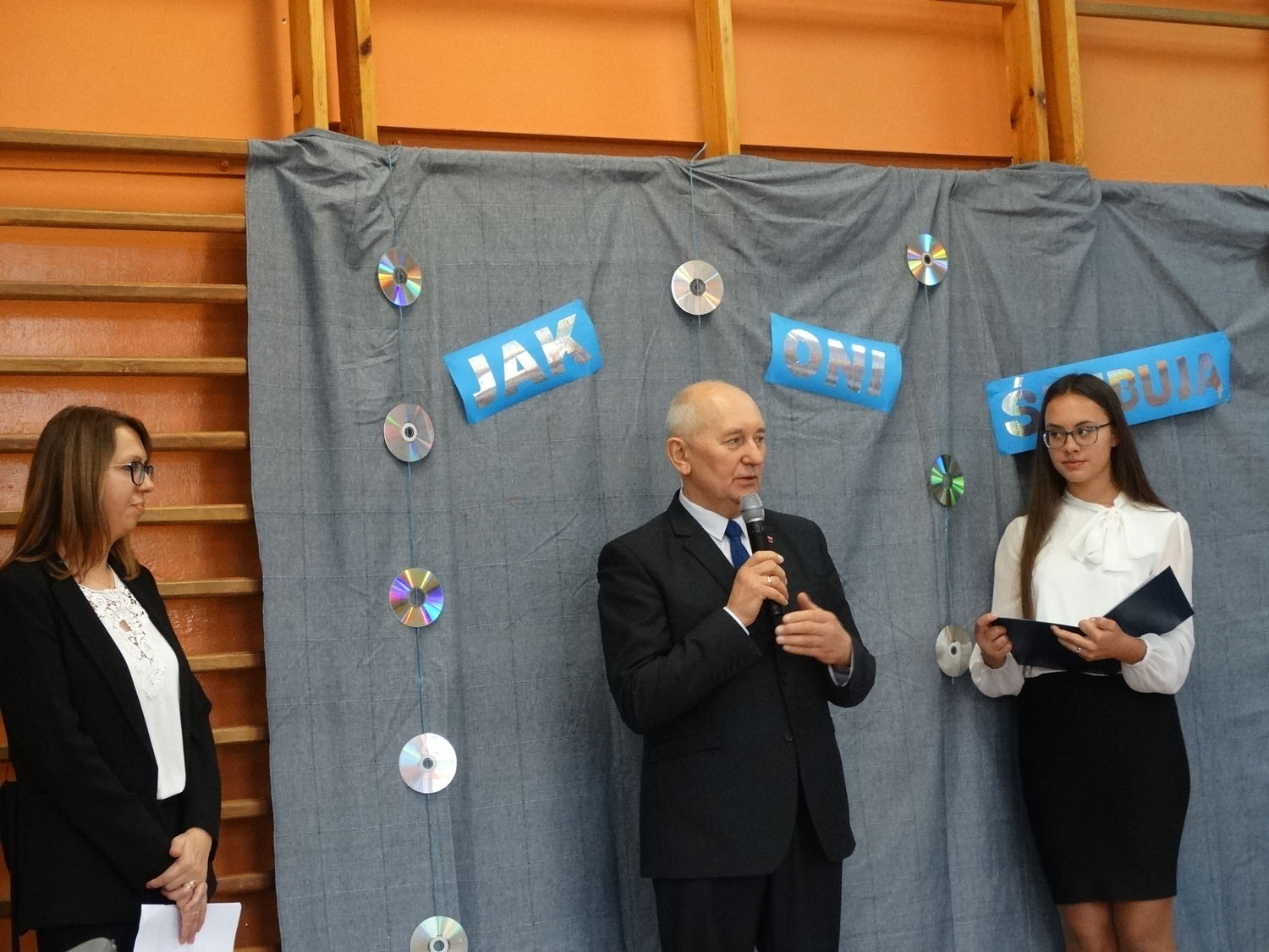 Wszyscy z przyjemnością obejrzeli program artystyczny pod wiele mówiącym tytułem „Jak oni ślubują?”. Uczniom towarzyszyły kamery GTVS (Gazomskiej Telewizji Szkolnej) oraz prezenterzy telewizyjni- Paulina Jeżyna oraz Krzysztof Widzisz. Kandydaci na uczniów wzięli udział w castingu na pierwszaka. Uczniowie poddani zostali surowej ocenie takich osobistości jak: Dorota Zawadzka – superniania, Magda Gessler – znawczyni zdrowej kuchni, Komendant Główny Policji- Zbigniew Kwiecień, Antoni Misierewicz- generał Wojska Polskiego oraz krytyk muzyczny- Elżbieta Rozpędowska. Pierwszoklasiści recytowali wiersze, śpiewali piosenki, tańczyli oraz udzielali odpowiedzi na pytania komisji, która bez wahania zdecydowała, że pierwszaki świetnie zdały egzamin i  mogą przystąpić do aktu ślubowania. Uczniowie kl. I ślubowali kochać Ojczyznę, dbać o dobre imię klasy i szkoły, być dobrymi kolegami i koleżankami, swoją nauką i zachowaniem sprawiać radość rodzicom i nauczycielom. Pani Dyrektor Aneta Piotrowska dokonała aktu pasowania każdego pierwszaka na ucznia SP im. św. JP II i wręczyła pamiątkowe dyplomy. Dzieci dostały również  prezenty od  pani radnej, rodziców, wychowawczyni oraz uczniów klasy II. Uroczystość uwieńczył  słodki poczęstunek przygotowany przez rodziców. Pierwszoklasistom życzymy radości, wspaniałych kolegów i koleżanek oraz wielu sukcesów w naszej szkole!