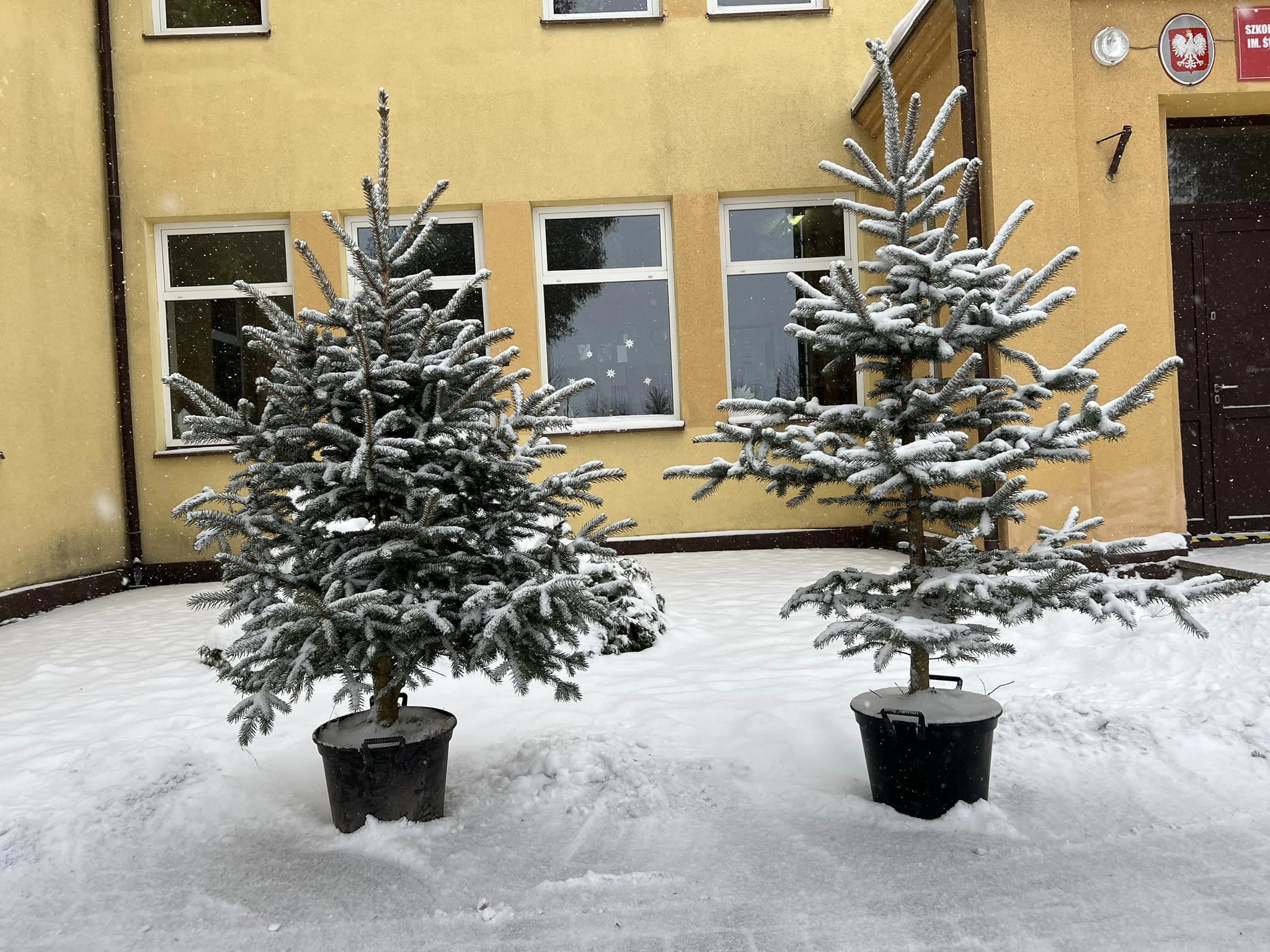 Drzewka na terenie szkoły.