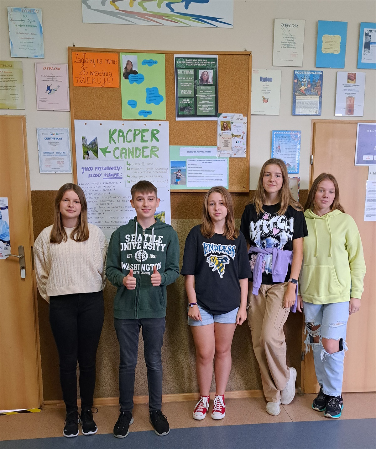 We wtorek 26 września wspólnie wybraliśmy kto będzie reprezentował uczniów w Samorządzie Uczniowskim. Najwięcej głosów zebrał Kacper Cander z klasy VIII i tym samym został przewodniczącym naszej szkoły. Na zastępcę wybraliśmy uczennicę klasy VII Amelię Kaźmierczak. W zarządzie jako sekretarz i skarbnik zasiądą Justyna Tworek oraz Alicja Byczek. Samorząd wspierała będzie również Karolina Sowa.