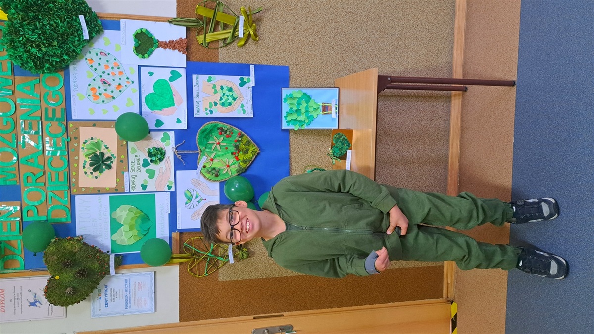 upominek. Z okazji tego dnia został ogłoszony konkurs plastyczny „Podaruj serce...zielone”, gdzie głównym tematem było wykonanie serca w formie pracy plastycznej lub przestrzennej. Rozstrzygnięcie konkursu odbyło się podczas akademii z okazji Dnia Edukacji Narodowej. Wybór zwycięzcy był bardzo trudny, ponieważ w każdą pracę uczniowie włożyli bardzo dużo trudu. Ostatecznie najlepszą pracę techniczną wykonali: uczeń z oddziału przedszkolnego Maksymilian Zasępa oraz Mikołaj Parnicki z klasy V,