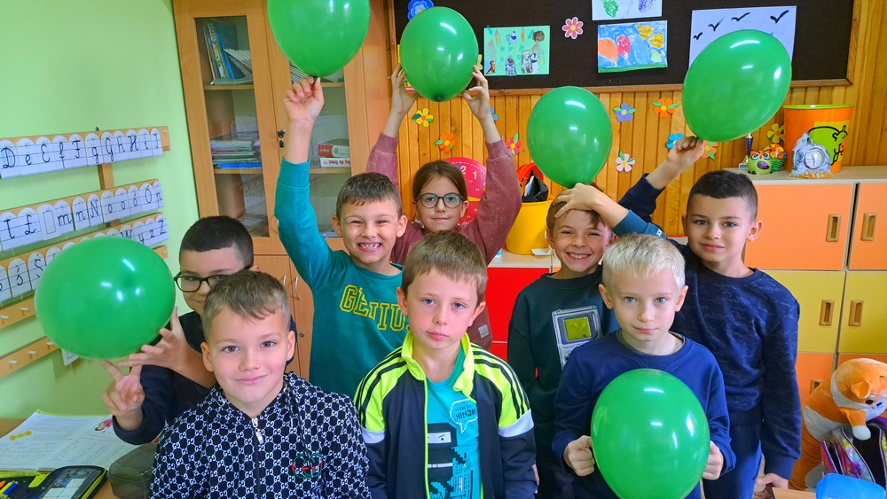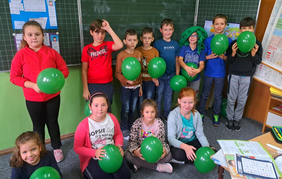 Dnia 9 października w naszej szkole świętowaliśmy Światowy Dzień Osób z Mózgowym Porażeniem Dziecięcym. Uczniowie, nauczyciele i pracownicy szkoły w geście solidarności z blisko 17 mln osób chorych na tę przypadłość ubrali się na zielono. W podziękowaniu za udział w tej inicjatywie każda „zielona osoba” otrzymała słodki