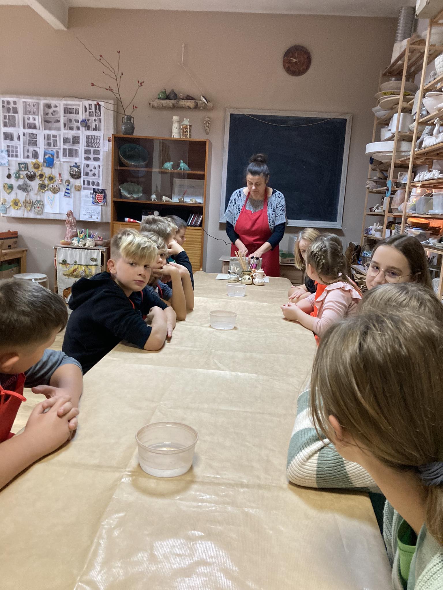 W dniu 9 listopada klasy 4 i 6 wybrały się na warsztaty ceramiczne i stolarskie. Dzieciaki miały okazję przenieść się w czasie i lepić z gliny - miały powstać wazony i dzbanki, ale niektórych wyobraźnia przekroczyła nasze oczekiwania … Na „stolarce” własnoręcznie tworzyli wieszaki w różnych kształtach i fasonach - nie brakowało pomysłów. Teraz już nie tylko chłopcy mogą się pochwalić, że używali szlifierki, wyrzynarki, wiertarki, kątownika czy japońskiej Piły !!! Za dwa tygodnie kolejne warsztaty i efekty końcowe! Nie możemy się już doczekać!!!