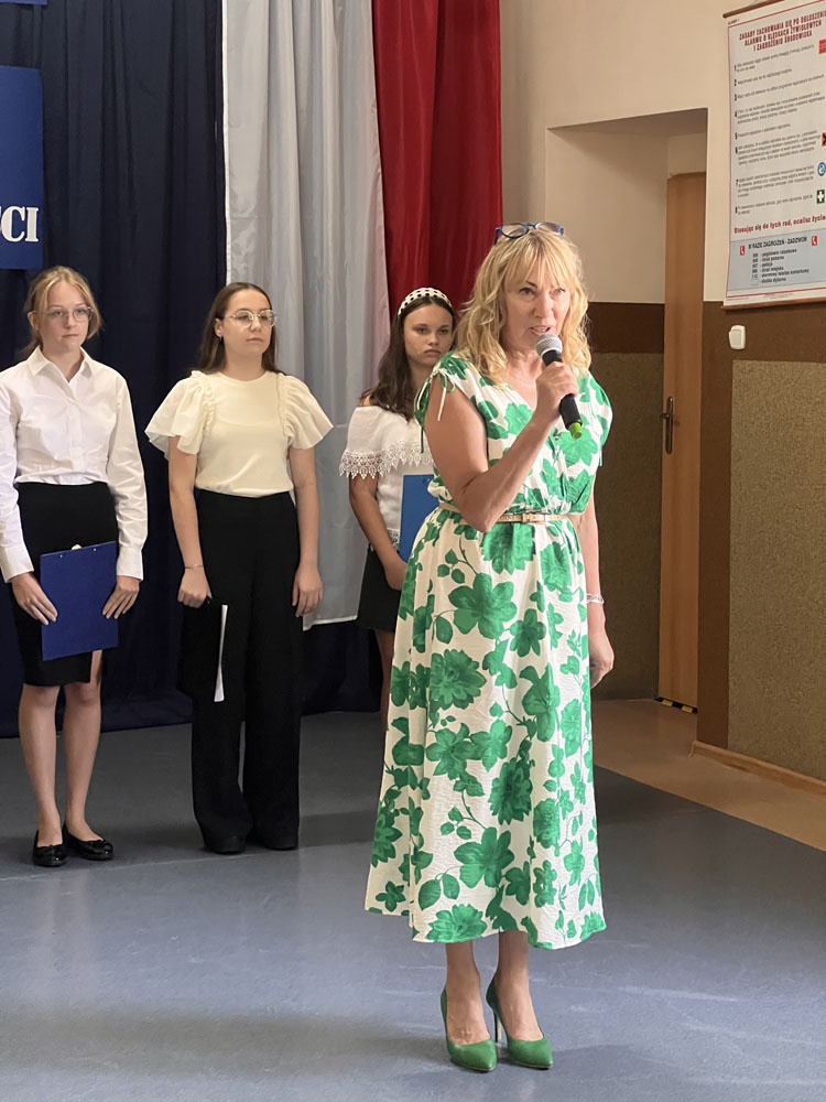 Dyrektor szkoły Pani Aneta Piotrowska przywitała wszystkich zgromadzonych, życząc uczniom sukcesów w nauce, a nauczycielom satysfakcji z pracy. Po oficjalnej części uroczystości, uczniowie udali się do swoich klas, gdzie spotkali się z wychowawcami i kolegami.