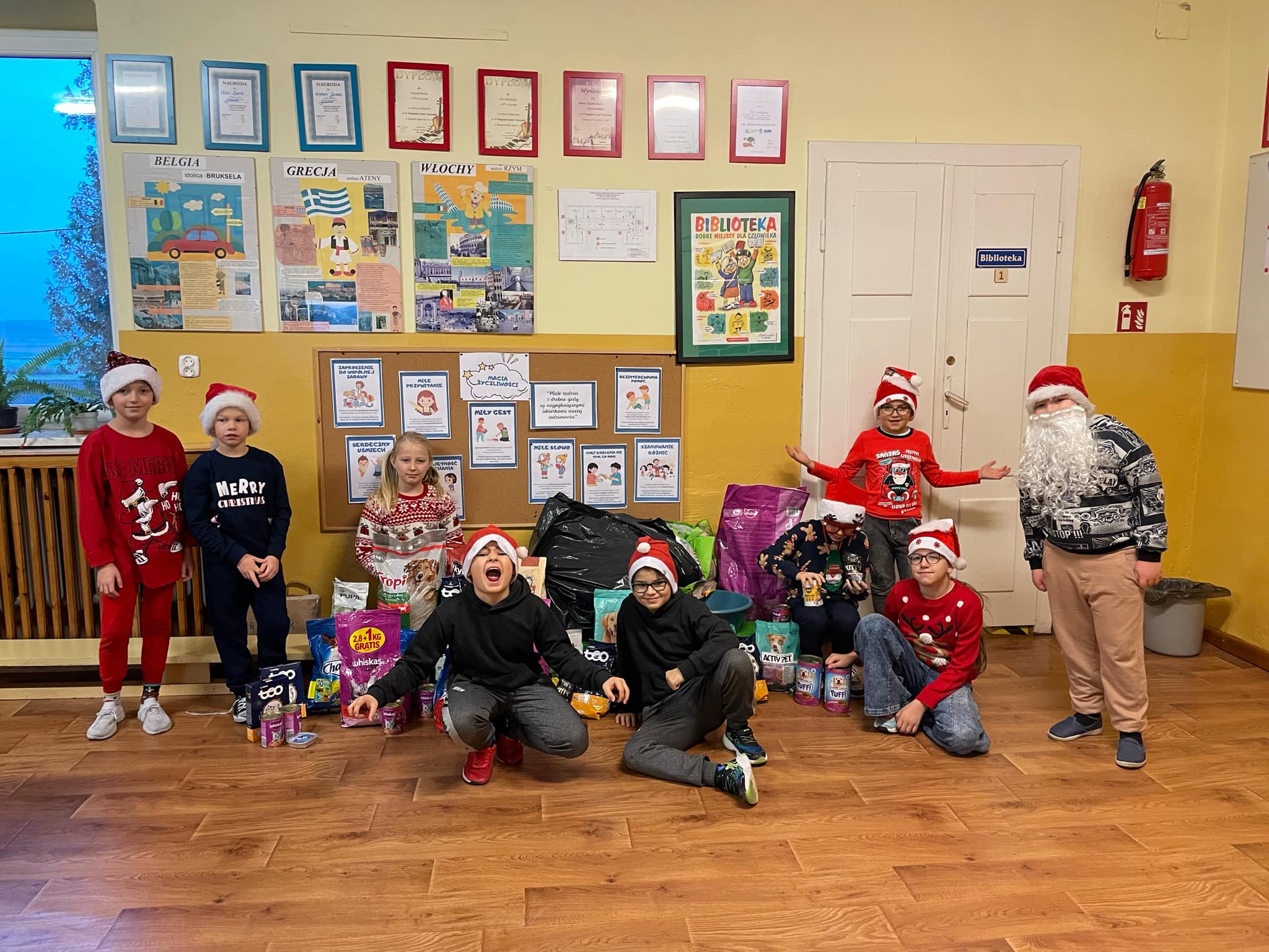 i starszych oraz pracownicy szkoły. Zebraliśmy karmę dla psów