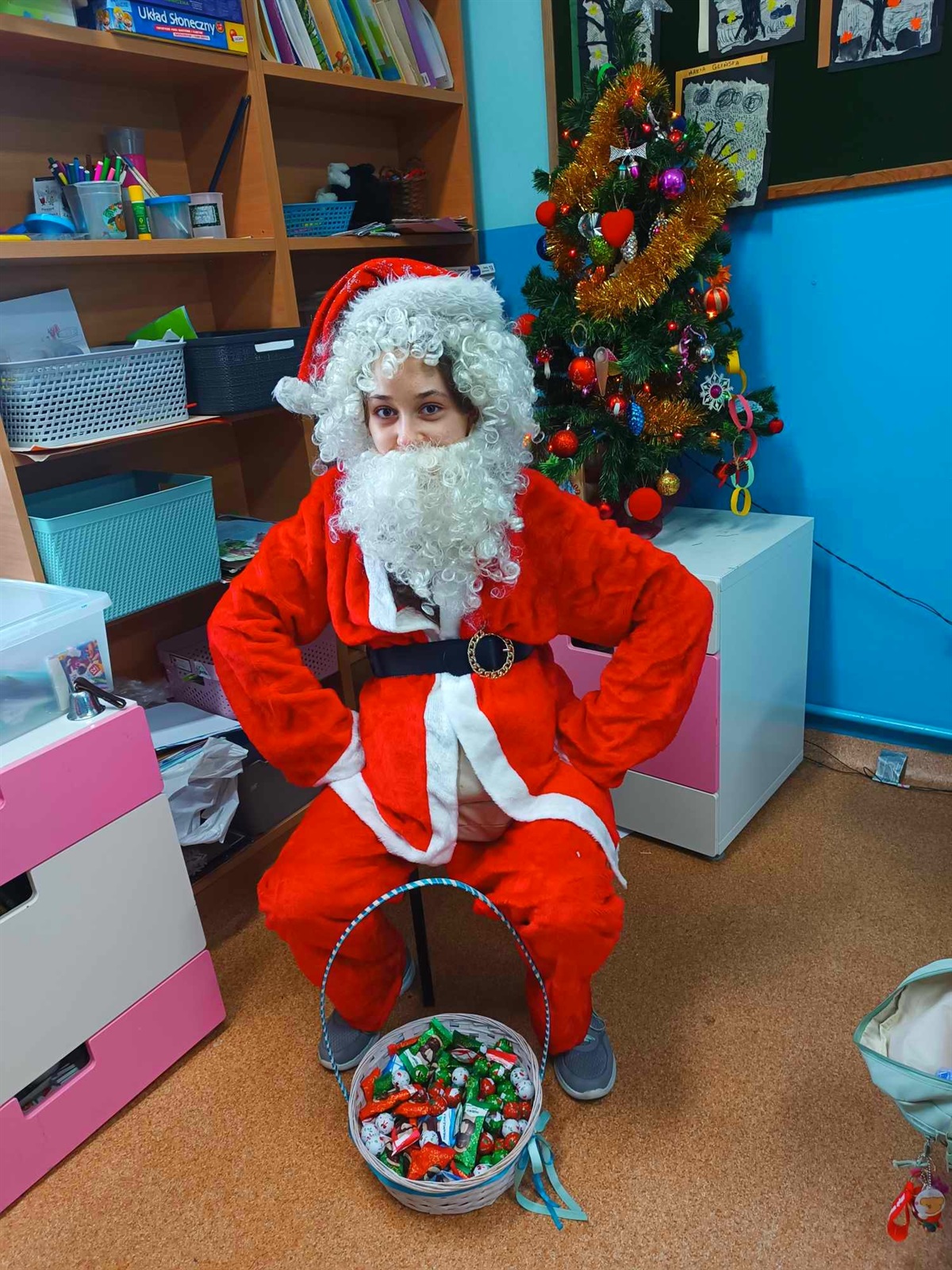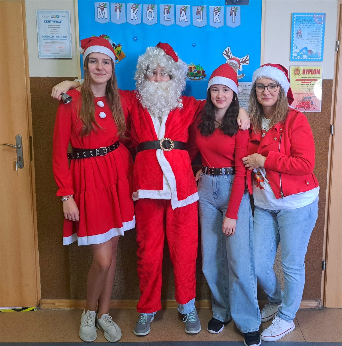 Samorząd Uczniowski w strojach Świętego Mikołaja wręczył