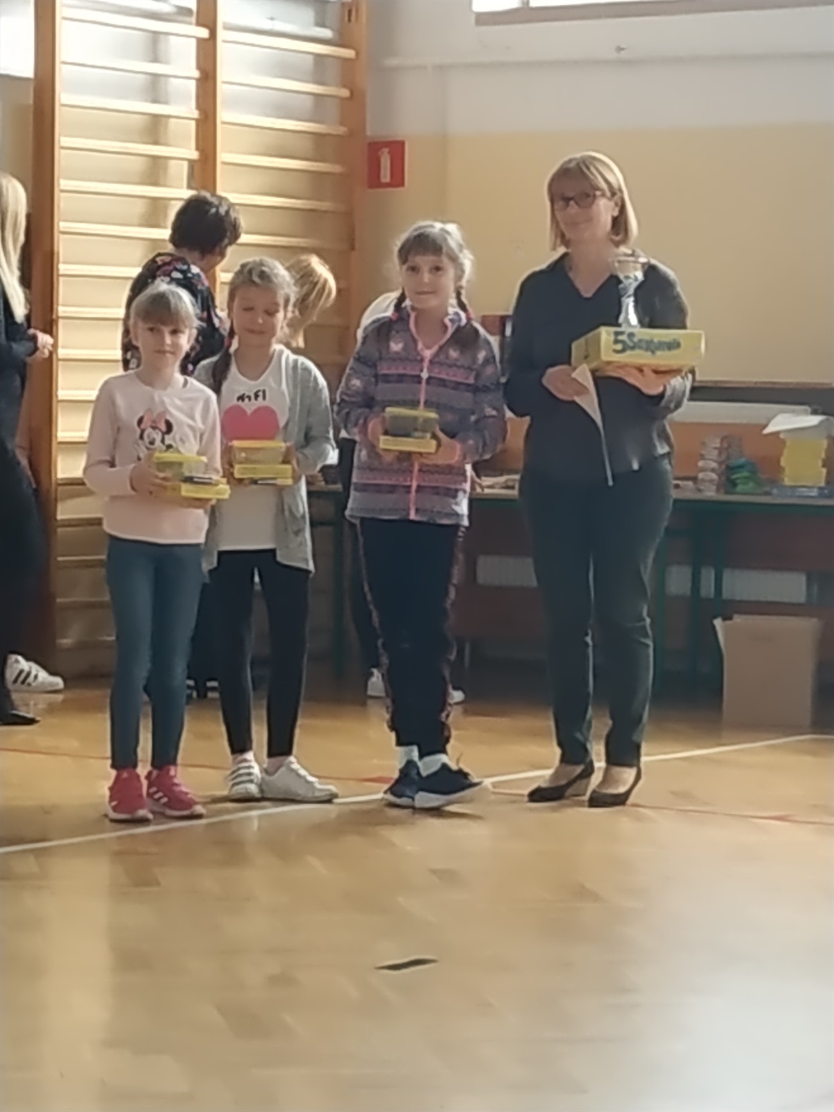 W piątek, 5 kwietnia uczniowie naszej szkoły wzięli udział w konkursie wiedzy o zdrowym żywieniu organizowanym przez Szkołę Podstawową w Srocku pt. "W zdrowym ciele, zdrowy duch". Do konkursu zostało wytypowanych po jednym uczniu z każdej klasy. Reprezentantki klas I-III w składzie: Martyna Bijoch, Amelia Kaźmierczak i Justyna Tworek, zajęły pierwsze miejsce. Reprezentanci klas IV-VIII w składzie: Marta Łaska, Wiktoria Gieszcz, Natalia Mucha, Milena Socha i Kacper Marusiński wykazali się dużą wiedzą na temat piramidy zdrowego żywienia.