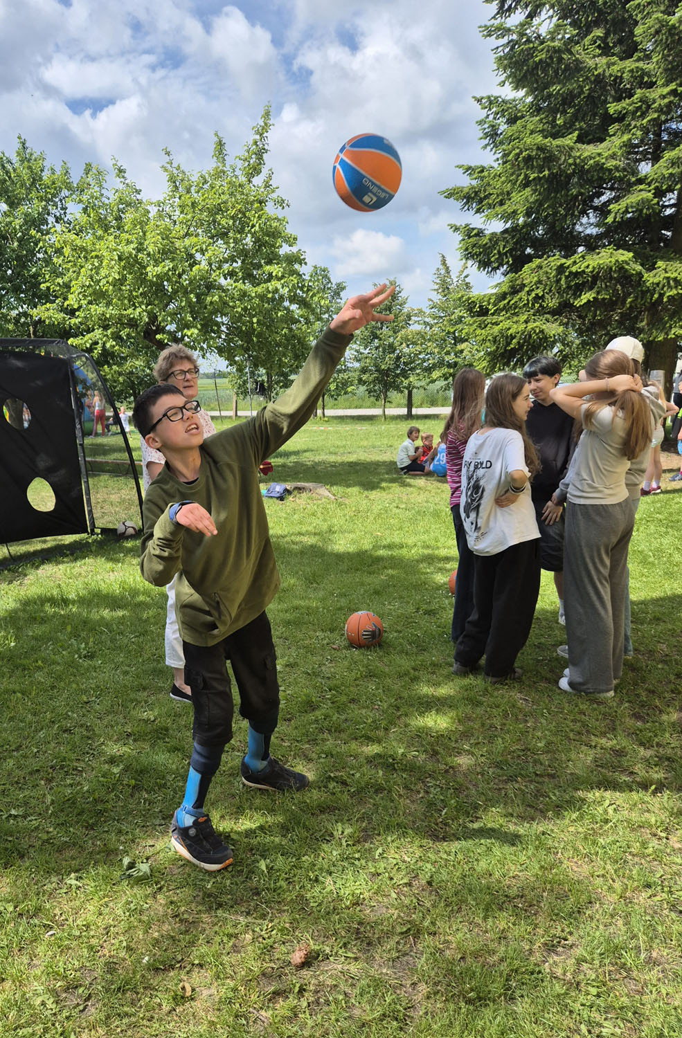 Z okazji Dnia Dziecka w naszej szkole odbyła się wyjątkowa impreza pełna radości, zabawy i sportowej rywalizacji. Na uczniów czekało wiele różnorodnych konkurencji, w tym m.in. rzut do celu, rzut do kosza oraz zabawy lekkoatletyczne, które cieszyły się ogromnym zainteresowaniem. Nie zabrakło również emocjonującego meczu piłki nożnej, w którym zawodnicy pokazali prawdziwego ducha fair play.