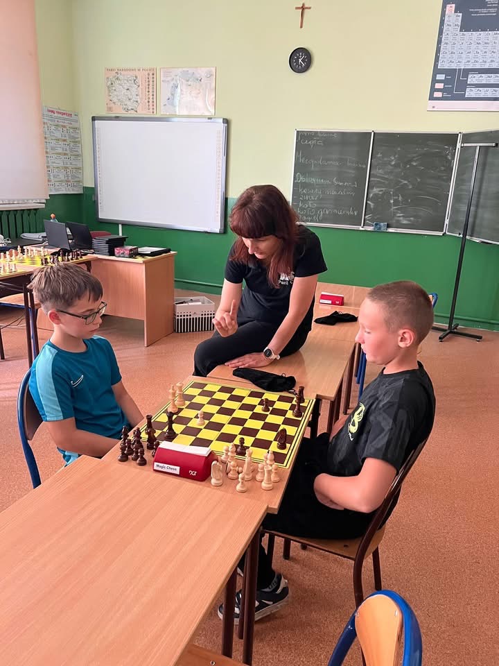 Któż nie marzy o dobrych ocenach z matematyki? Nic prostszego. Wystarczy zapisać się na szachy. Frekwencja na zajęciach pokazowych tej strategicznej gry zorganizowanych w naszej szkole wyniosła niemal 100%. Podczas zajęć uczniowie rozwijali  logiczne myślenie i wyobraźnię, poprawiali koncentrację, no i uczyli się podstaw szachowych zasad ♟️