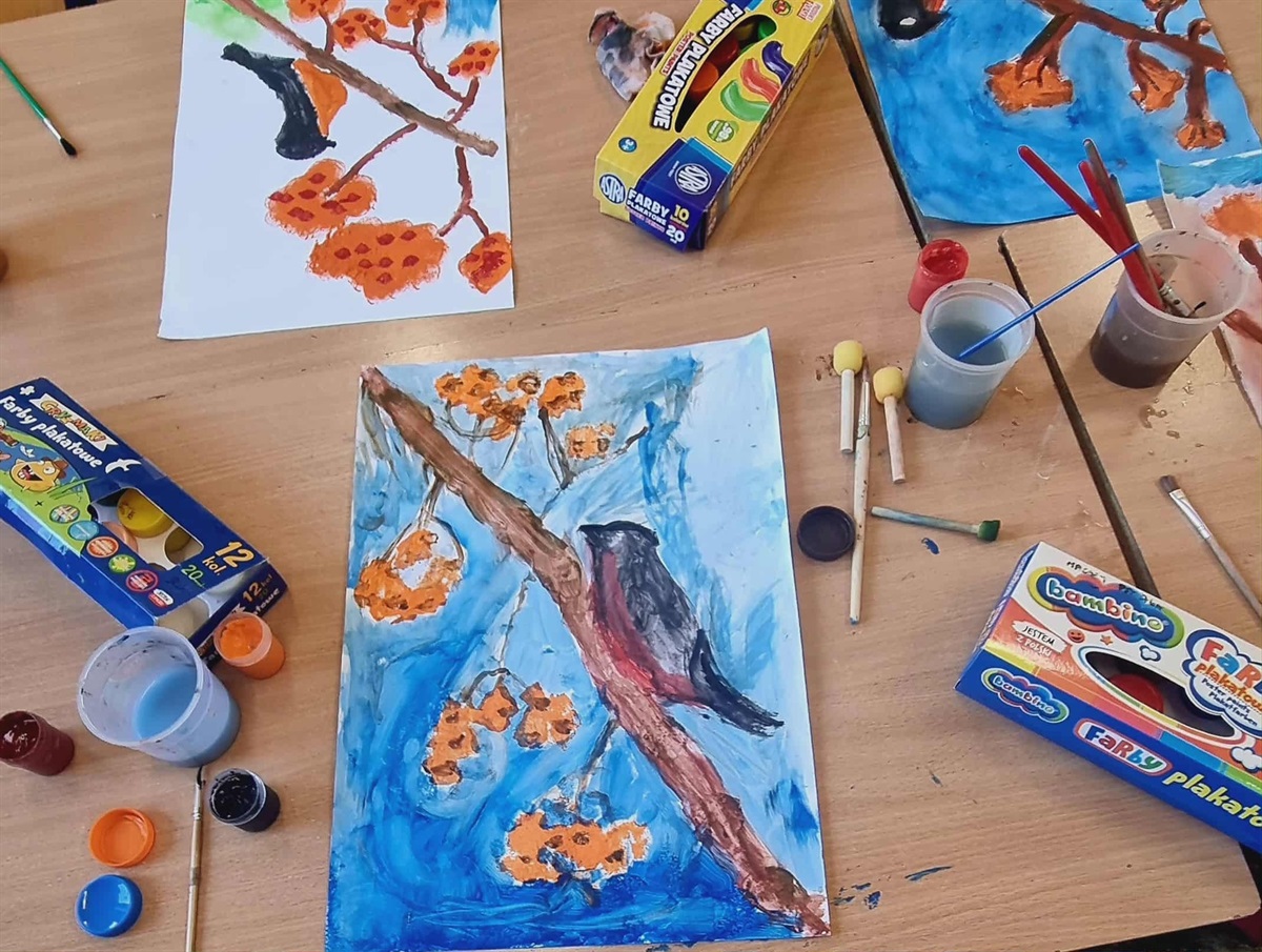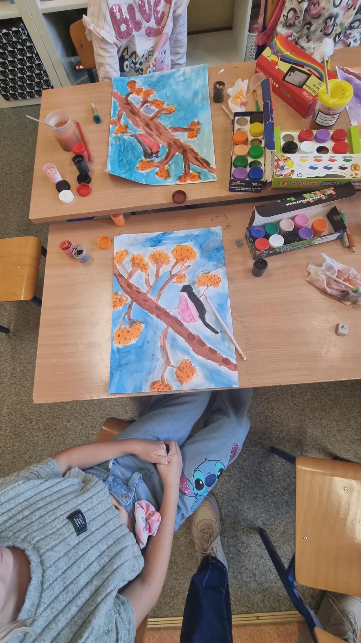 Na ostatnich zajęciach szkolnego koła plastycznego przenieśliśmy się w świat barwnej jesieni. Uczniowie doskonalili swoje umiejętności malarskie, kopiując obraz o tematyce jesiennej. Było dużo ciepłych kolorów, kreatywnych interpretacji i wspaniałej atmosfery twórczej pracy. ✨