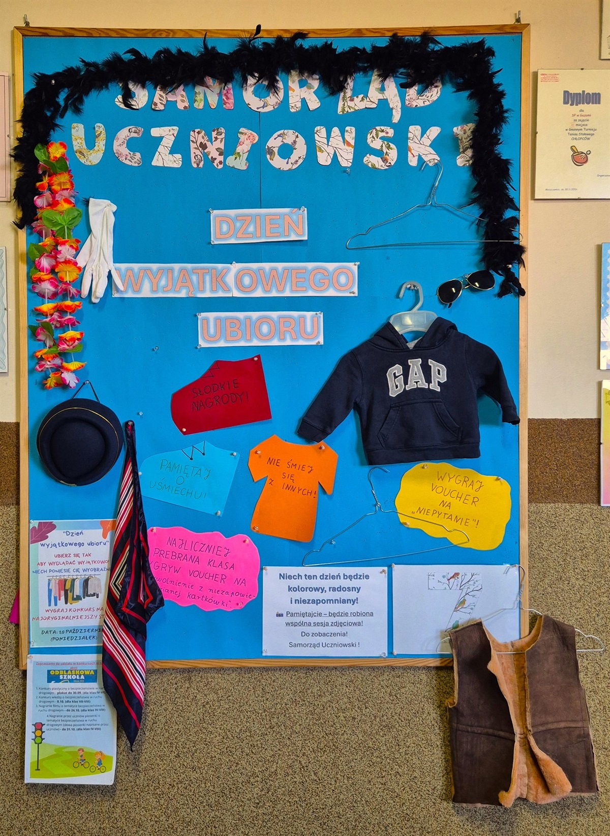 👠👞👘🥻W poniedziałek w naszej szkole odbył się Dzień Wyjątkowego Ubrania, podczas którego uczniowie mogli zaprezentować swoją kreatywność i oryginalność w ubiorze. Wydarzenie spotkało się z dużym entuzjazmem – wielu uczniów wzięło udział, prezentując pomysłowe, kolorowe i niebanalne stroje. 🧥🥼👚👗 Za zaangażowanie i odwagę w wyrażaniu siebie dzieci zostały nagrodzone drobnymi upominkami – czekoladą 🍫oraz voucherami 📋 na zwolnienie z niezapowiedzianej kartkówki. Dziękujemy wszystkim uczniom za udział i świetną zabawę! Mamy nadzieję, że takie dni staną się miłą tradycją w naszej szkole.