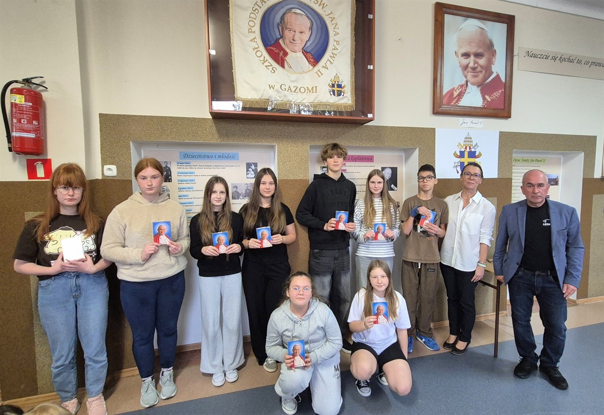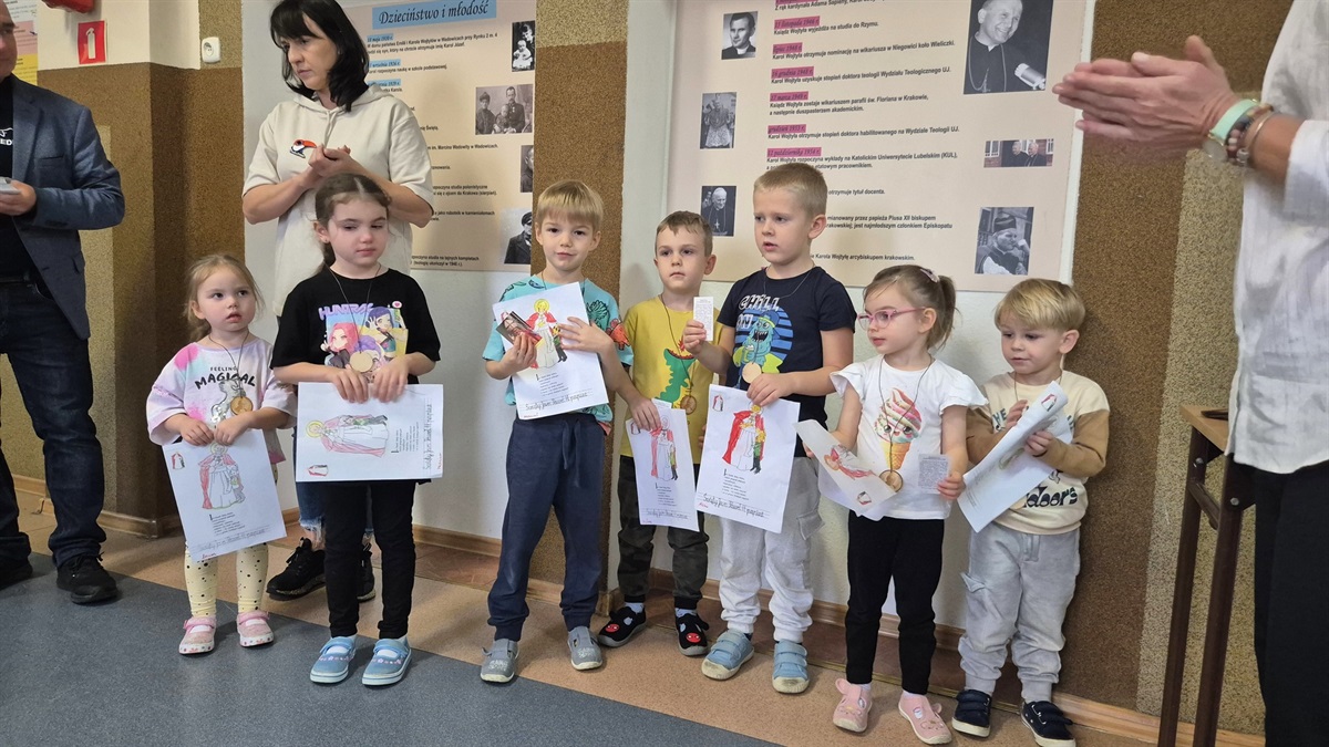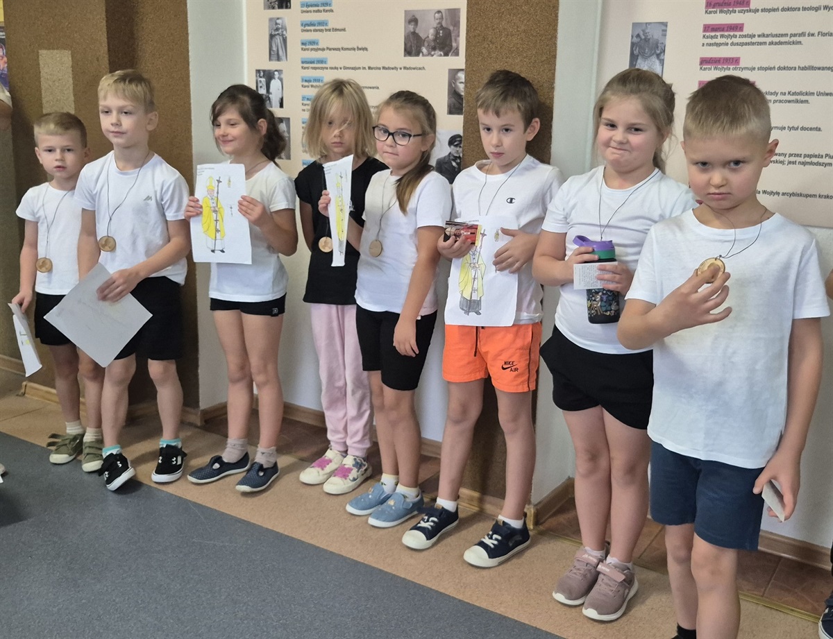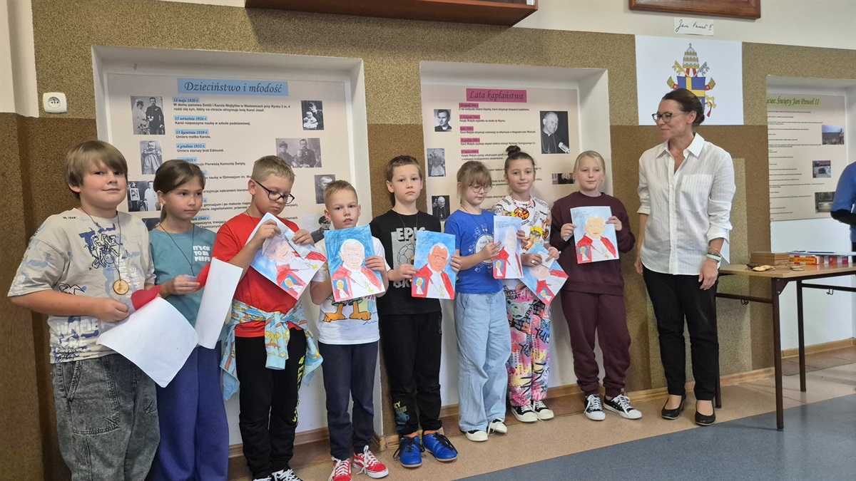 W piątek w naszej szkole odbył się Dzień wspomnień o Janie Pawle II zorganizowany z okazji rocznicy wyboru Karola Wojtyły na papieża. Pan Paweł Andrzejewski przygotował dla każdej klasy ciekawe aktywności – quizy oraz kolorowanki poświęcone naszemu wielkiemu Rodakowi. Uczniowie klas 0–5 otrzymali pamiątkowe medale, a starsze klasy – obrazy z wizerunkiem Jana Pawła II. Był to czas refleksji, wspólnej zabawy i przypomnienia sobie, jak ważną postacią był Papież Polak.