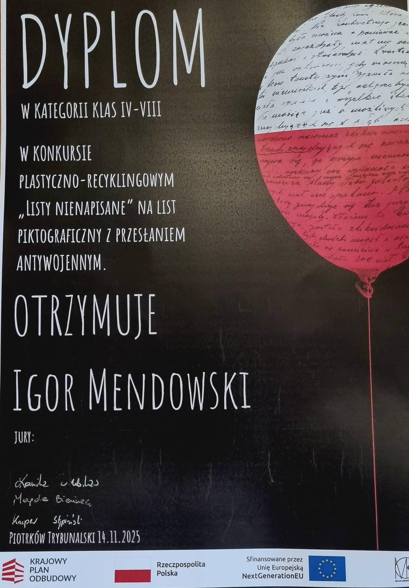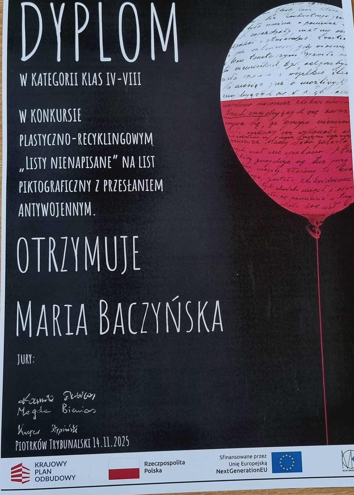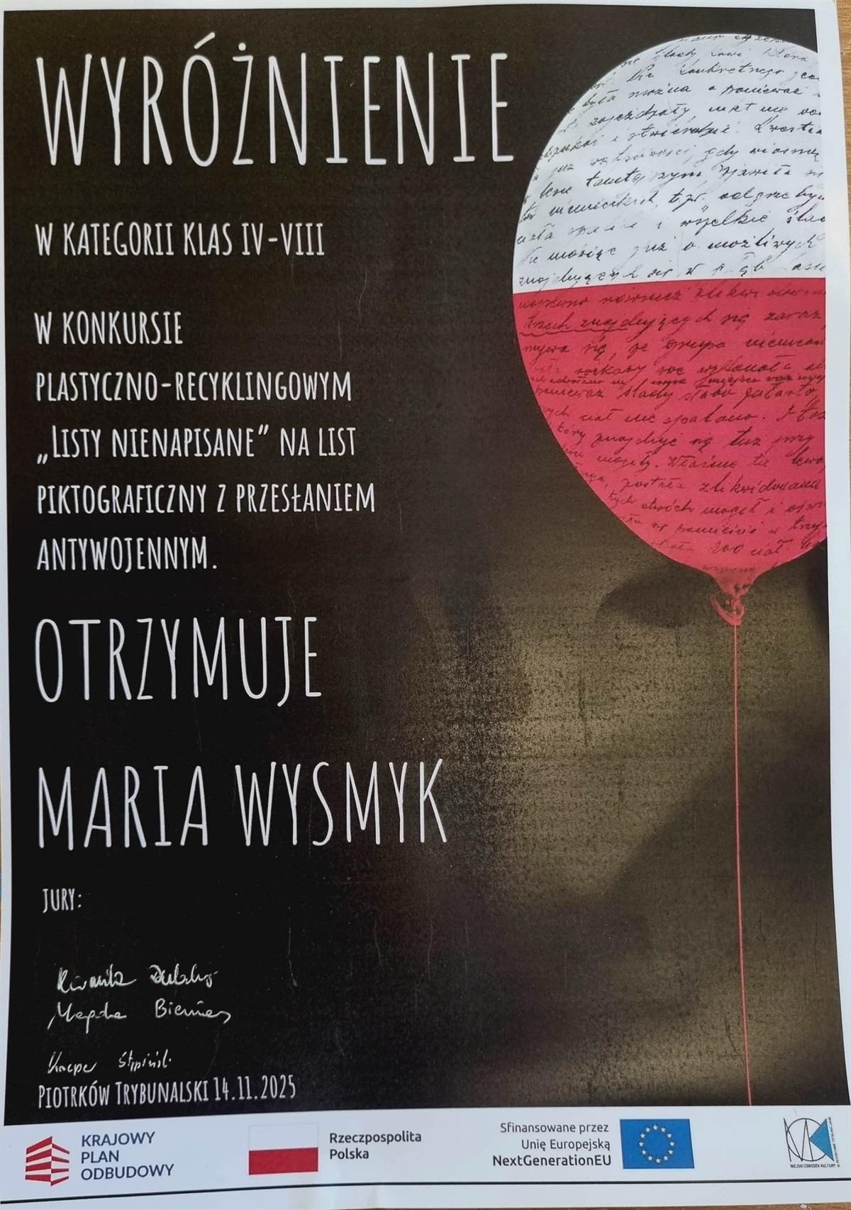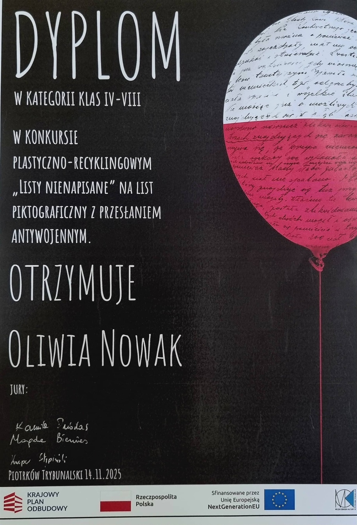 Uczniowie nagrodzeni w konkursie "LISTY NIENAPISANE" zorganizowanym przez MOK w Piotrkowie Trybunalskim. Serdecznie gratulujemy !