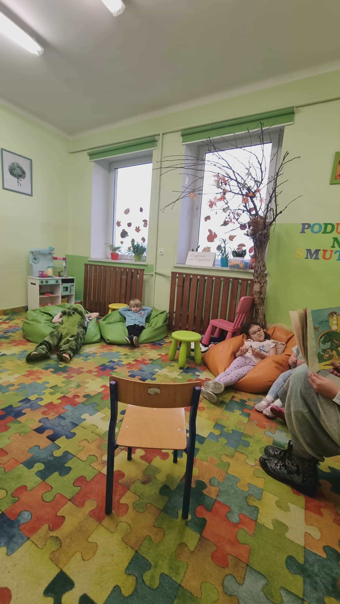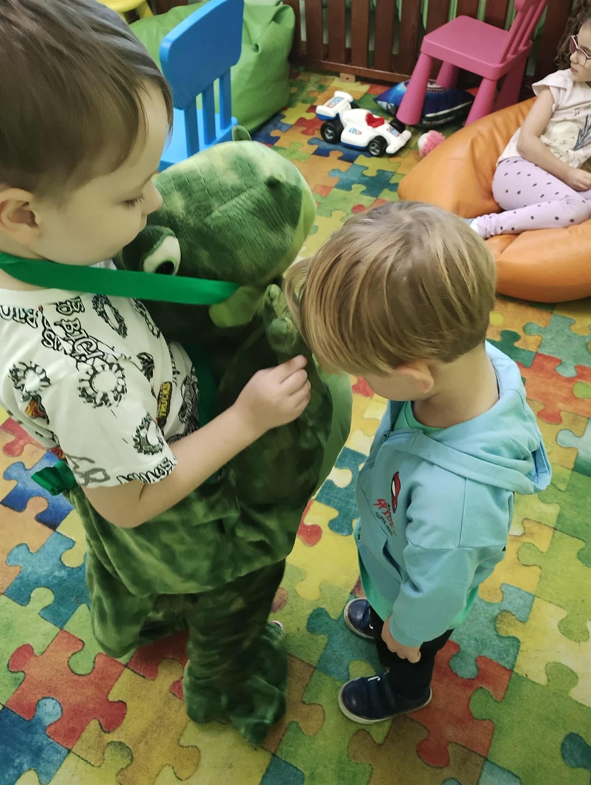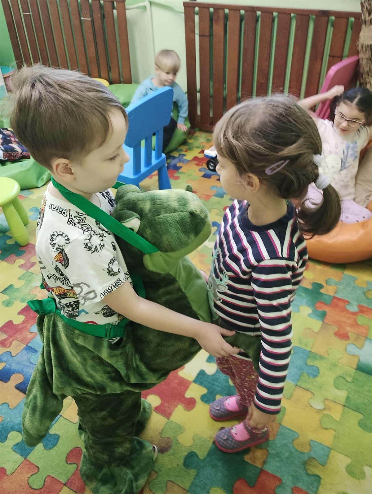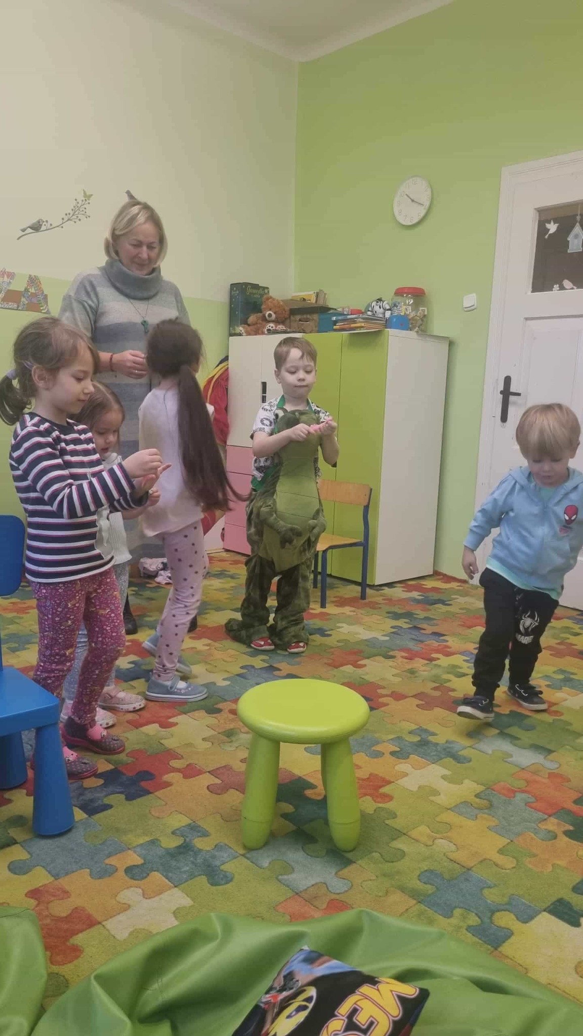 W szkolnej bibliotece trwa cykl spotkań „Czytanie na dywanie”. Tym razem gośćmi byli uczniowie z oddziału przedszkolnego, a motywem przewodnim -  smoki! 🐉🐲Po wysłuchaniu książki „Sceny z życia smoków”, którą przeczytała pani bibliotekarka, rozpoczęło się prawdziwe smocze szaleństwo. Były scenki z ich życia, smocze bańki, zawody „który smok poleci najdalej”, a nawet spotkanie ze smokiem Antonim, który przyjmował nowych towarzyszy do smoczej drużyny. Było radośnie, twórczo i odrobinę sportowo - czyli tak, jak smoki lubią najbardziej 🙂 📚📖