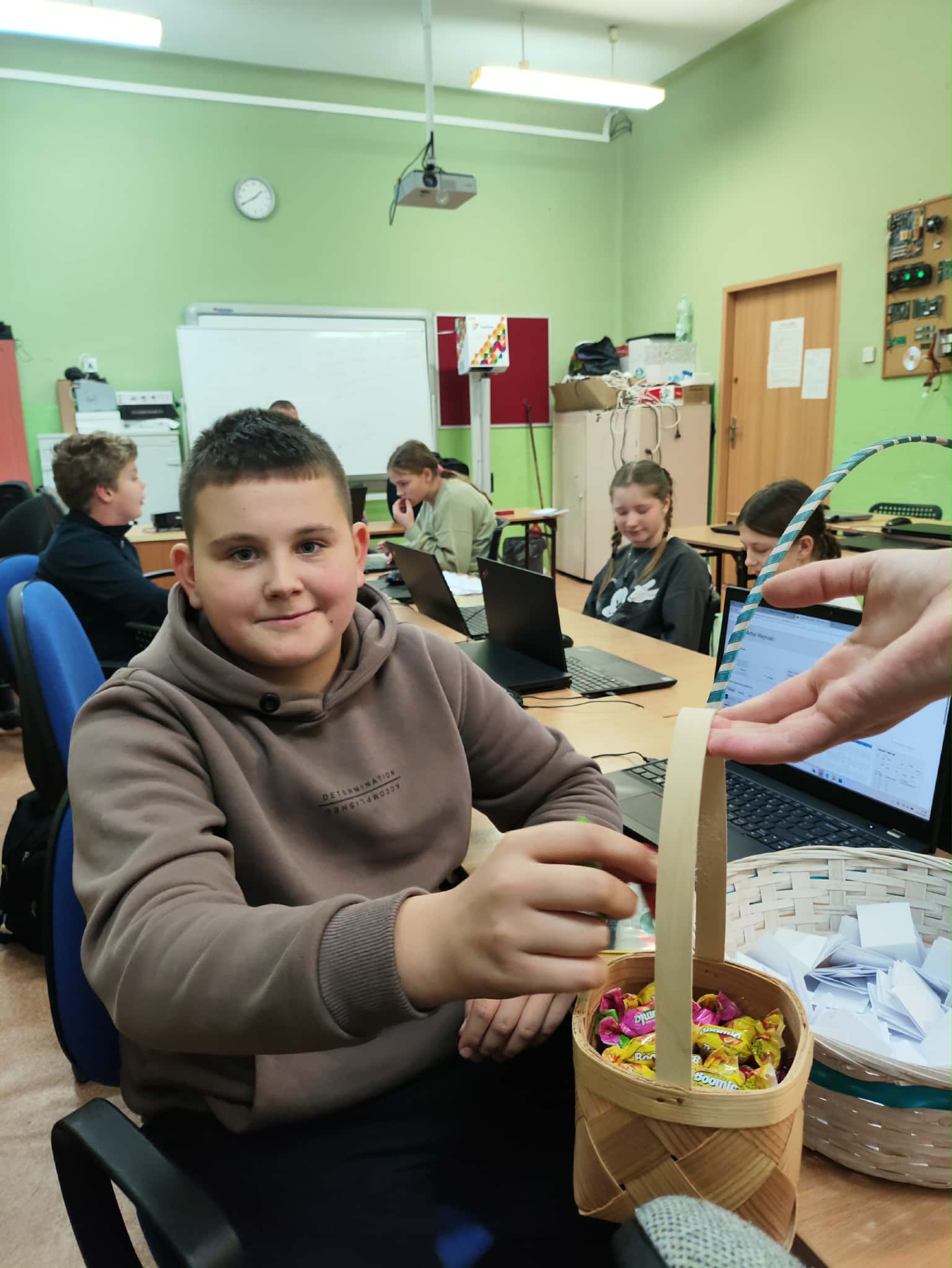 W tym dniu po szkole chodził także specjalny Patrol Samorządu Uczniowskiego. Jego zadaniem było sprawdzanie znajomości tabliczki mnożenia zarówno wśród uczniów, jak i pracowników szkoły. Osoby, które udzieliły poprawnych odpowiedzi, otrzymywały słodki upominek. 🍬