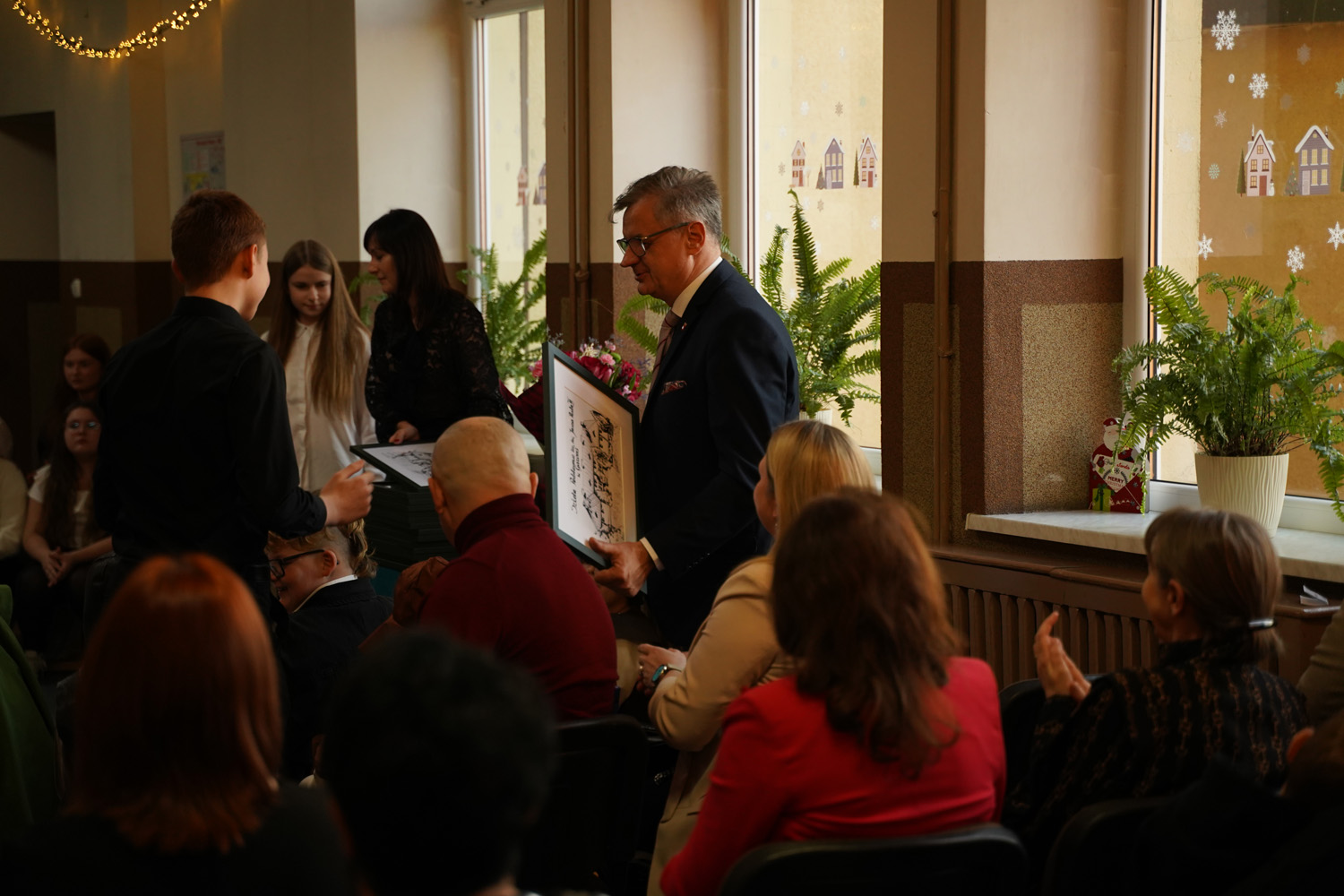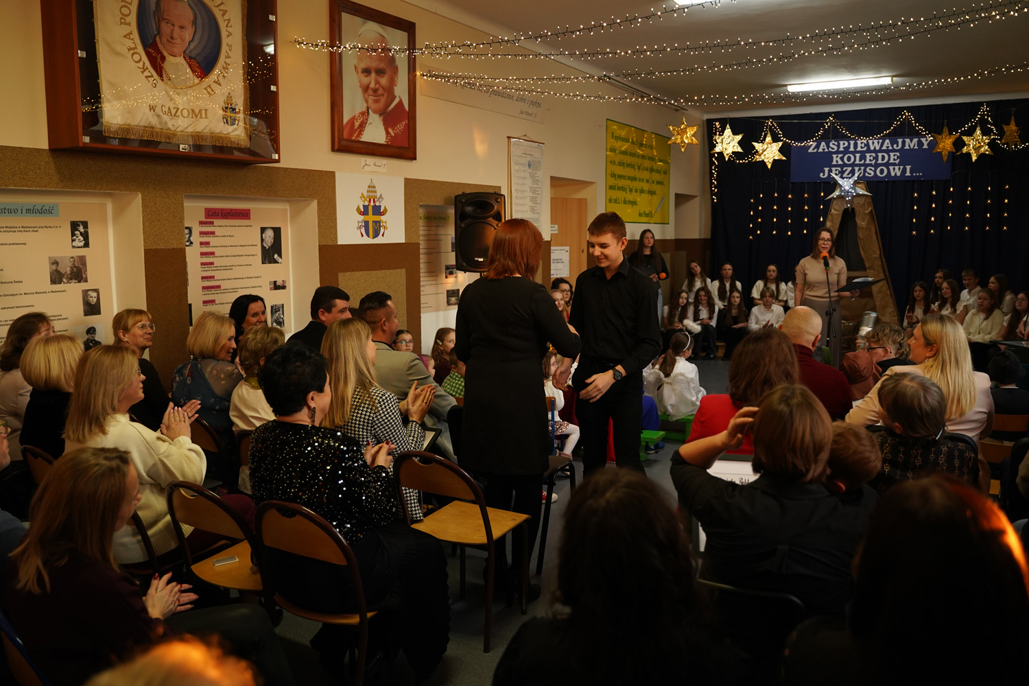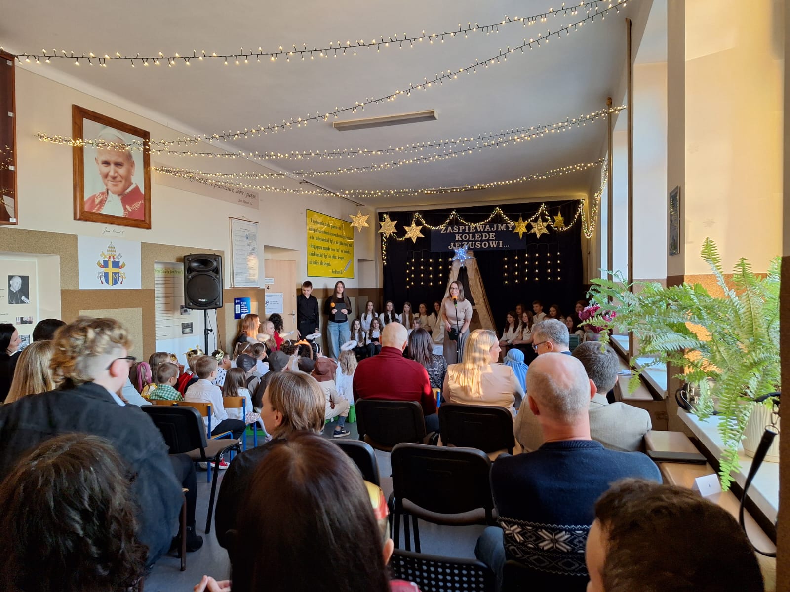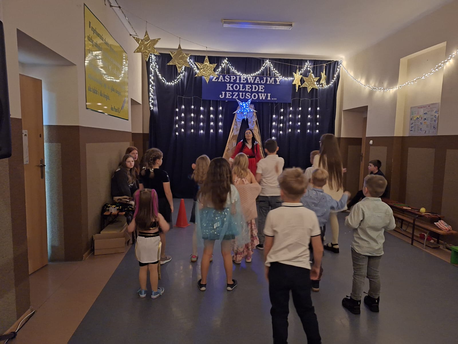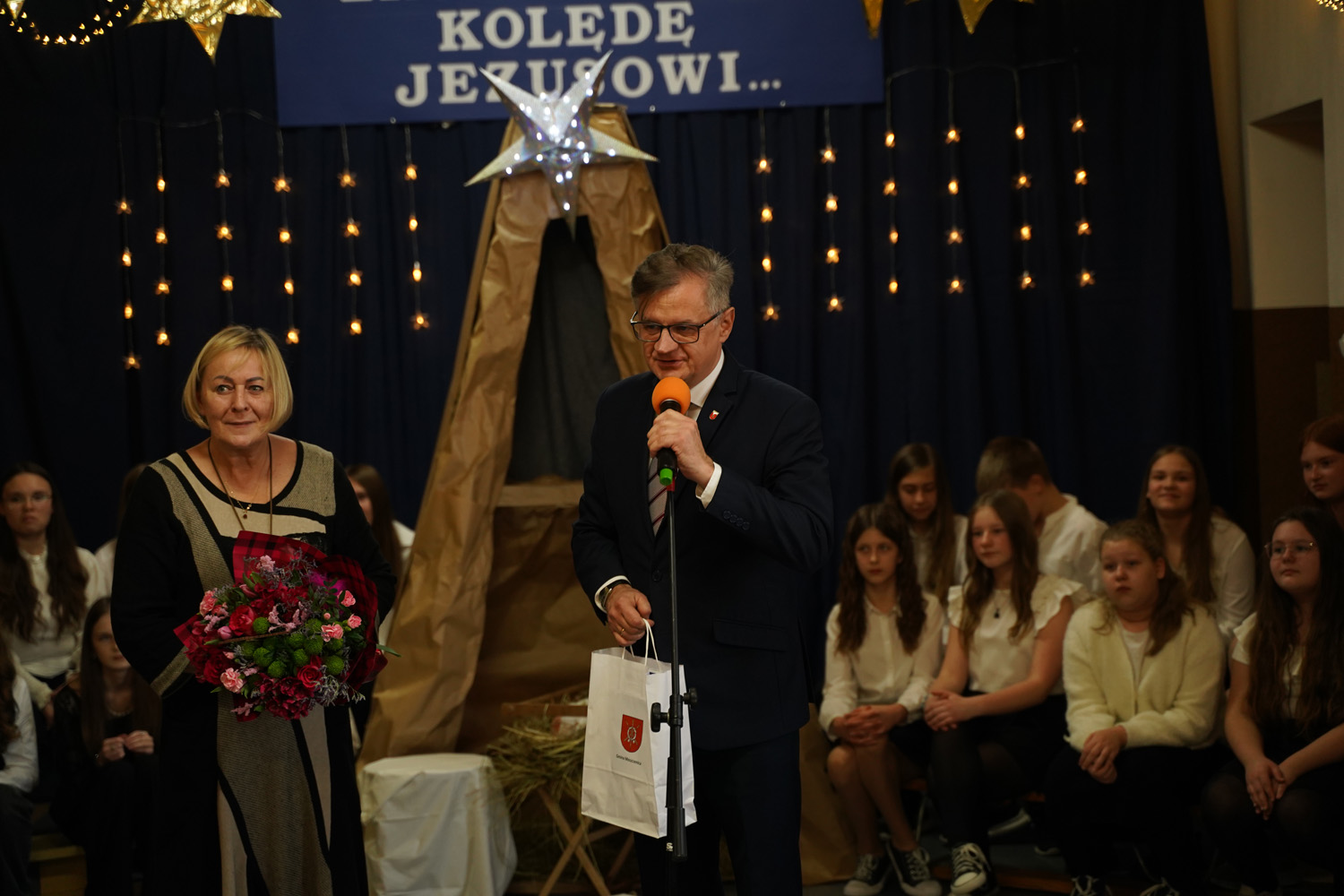 Przyjaźń i dobro to wartości, które nabierają szczególnego znaczenia, gdy możemy dzielić je z innymi - takie przesłanie towarzyszyło zebranym podczas jasełek bożonarodzeniowych przygotowanych przez uczniów klas: drugiej i trzeciej oraz chóru szkolnego. Swoją obecnością zaszczycili nas: Dariusz Magacz- Wójt Gminy Moszczenica, Anna Bijoch - Skarbnik Gminy, Iwona Jarosińska - Przewodnicząca Rady Gminy, Piotr Patała- Zastępca Przewodniczącej, Olga Jaros - Przewodnicząca Komisji Oświaty oraz Elżbieta Zielak - Kierownik Referatu Edukacji. Nie zabrakło również sołtysów, przedstawicieli OSP, KGW, rodziców, emerytowanych nauczycieli i pracowników szkoły, darczyńców. Choinka szkolna była również okazją do podsumowania mijającego półrocza. Kamila Sitek- dyrektor Szkoły podziękowała za pomoc i wsparcie w realizacji najważniejszych przedsięwzięć, do których należą: wyrównanie terenu boiska i obsadzenie go drzewami, remont szkolnych łazienek, doposażenie świetlicy oraz wsparcie w zakresie poprawy bezpieczeństwa uczniów. Upominki w postaci grafiki szkoły  otrzymali włodarze Urzędu i Rady Gminy Moszczenica oraz przedsiębiorcy, społecznicy, przedstawiciele Rady Rodziców: Barbara i Marcin Baczyńscy, Agnieszka Dziubałtowska, Barbara Sońta - Sołtys wsi Gazomia Stara, Edyta Kędra - Przewodnicząca Rady Rodziców, firma Womat w Piotrkowie Trybunalskim, PUH. Grzegorz Głowacki w Moszczenicy, Pro-Bud w Piotrkowie Trybunalskim, Bort-Bud w Piotrkowie Trybunalskim.
