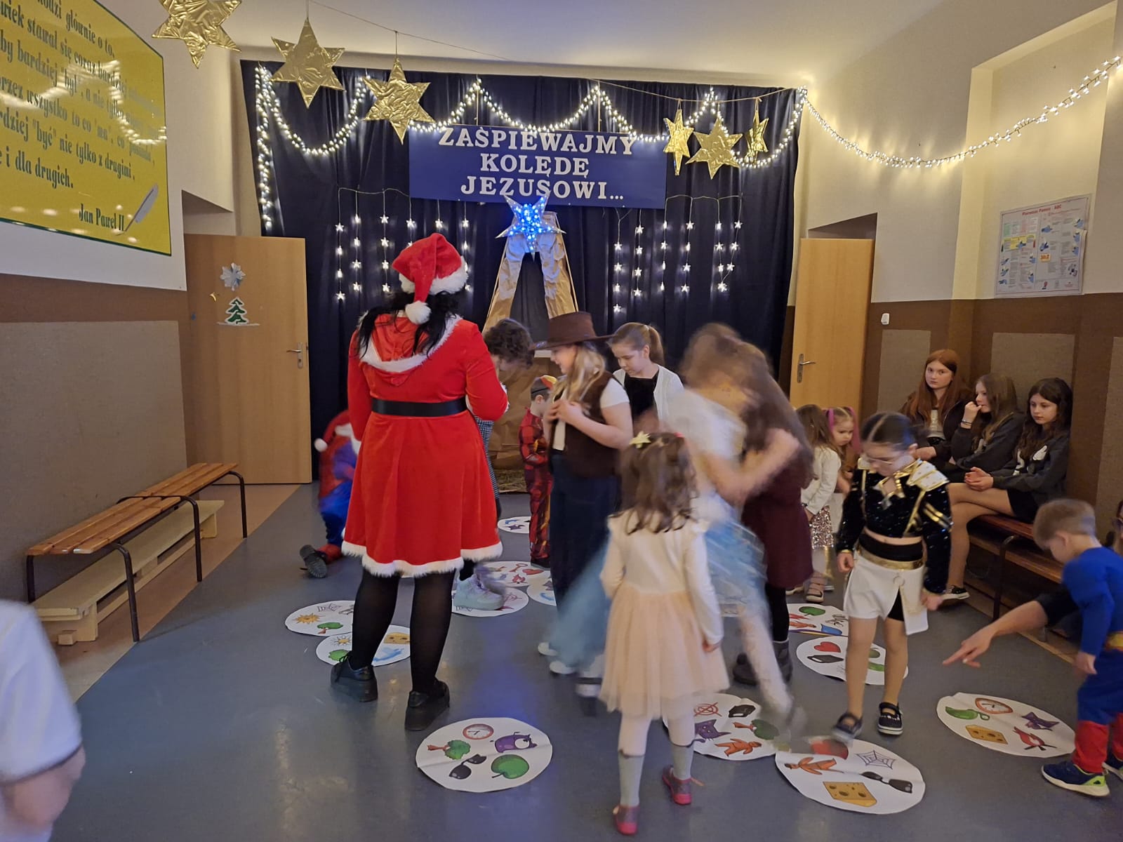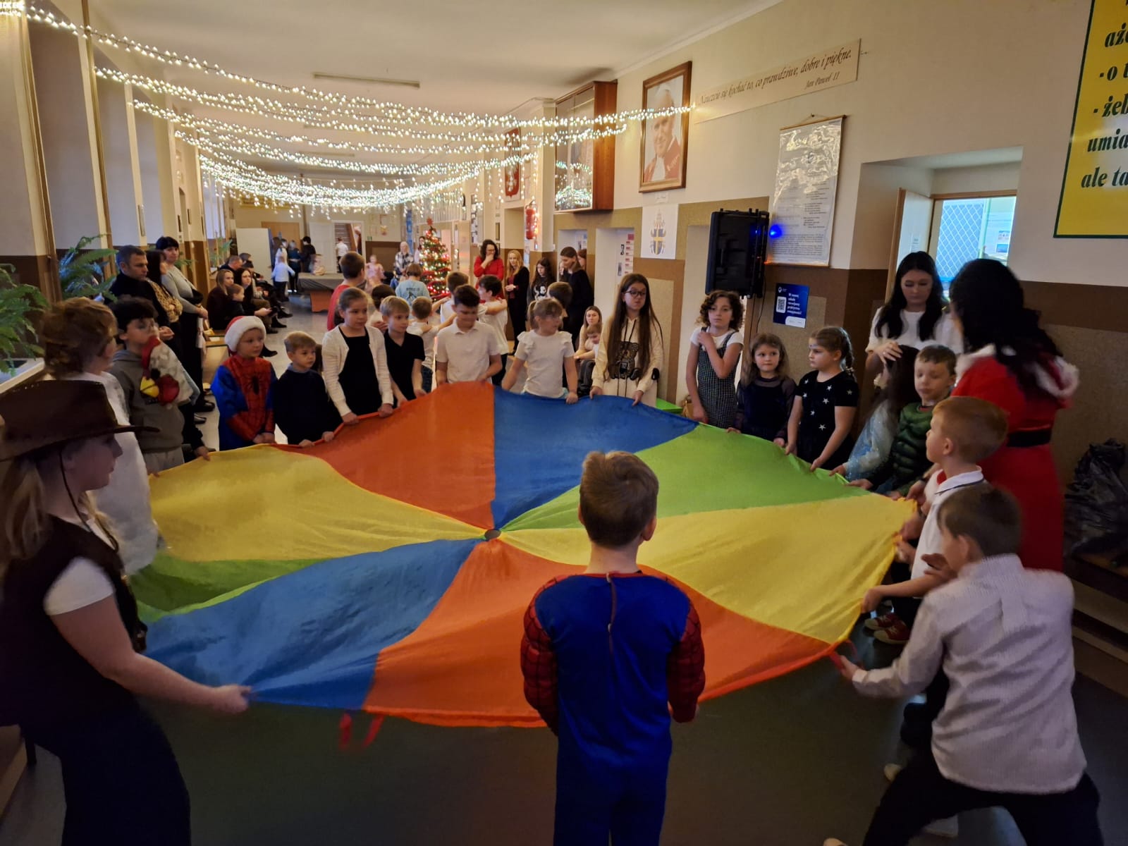 W czasie choinki szkolnej nie zabrakło zabaw z animacjami, tańców i poczęstunku.