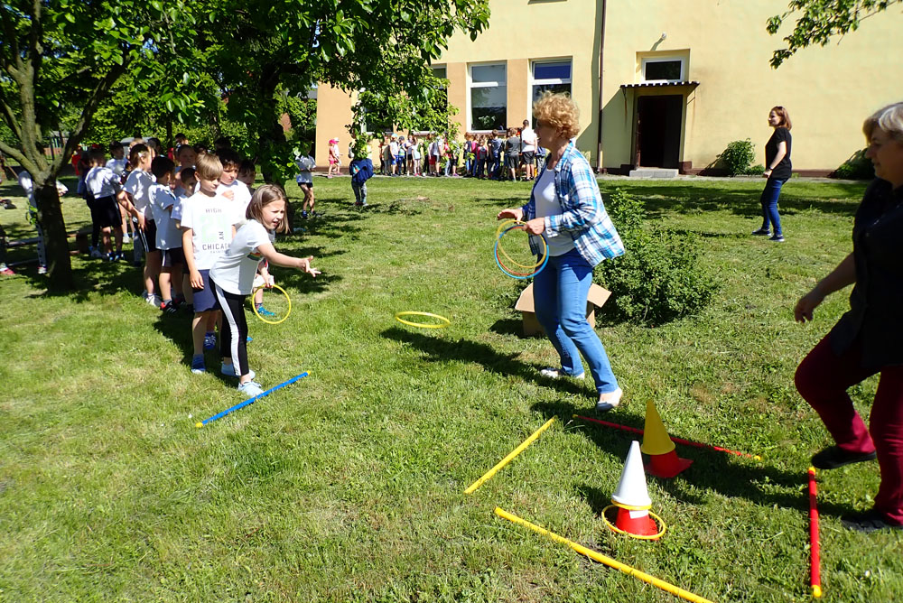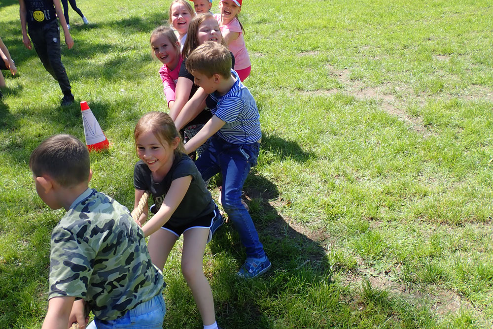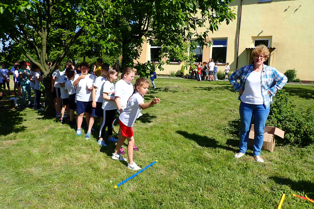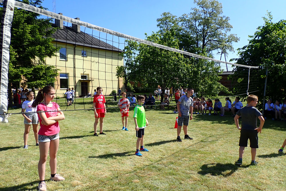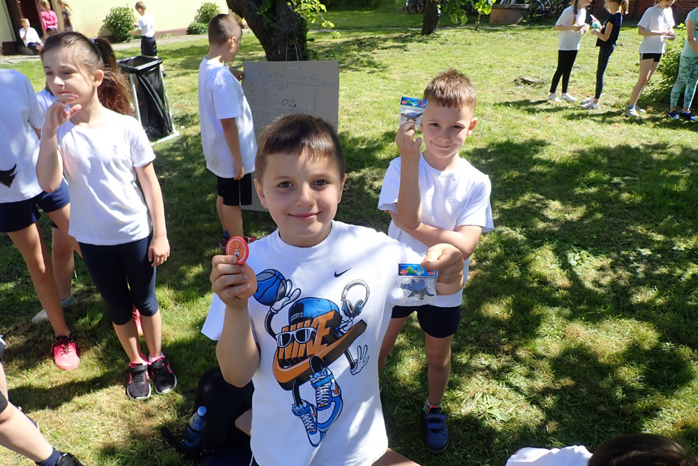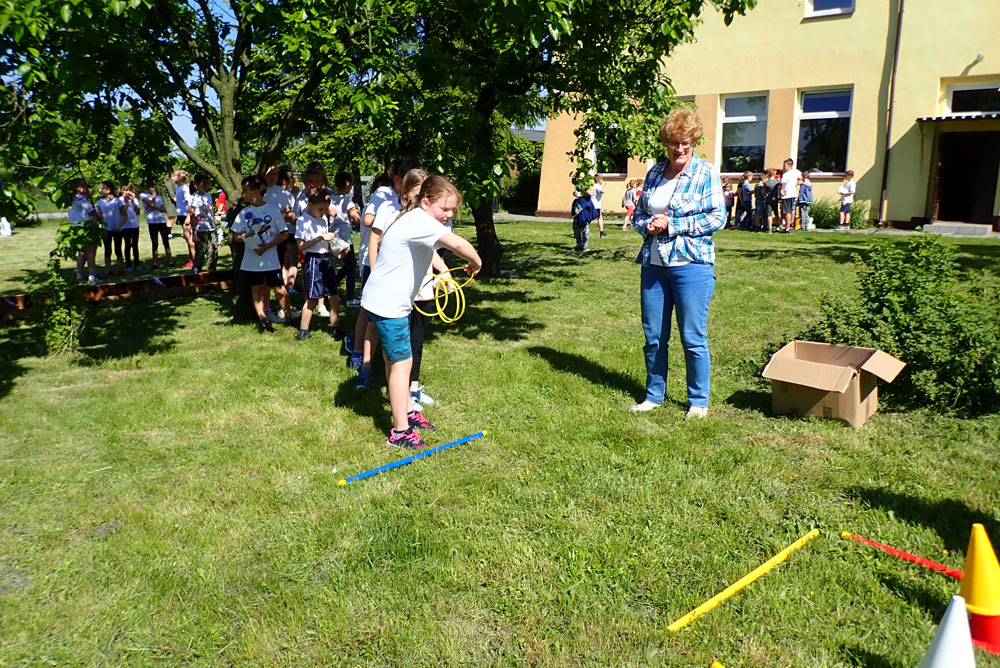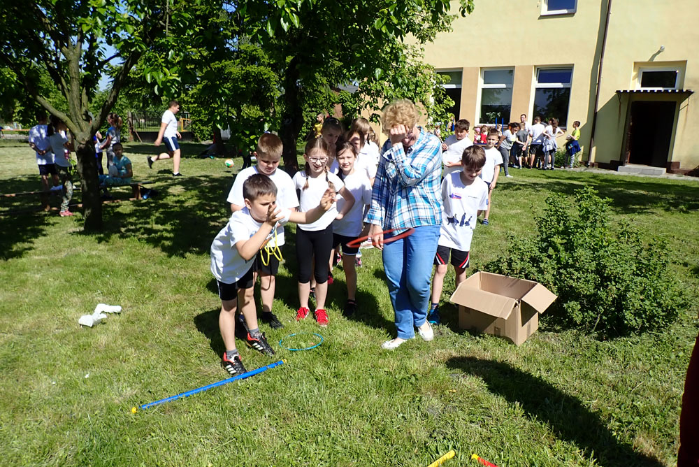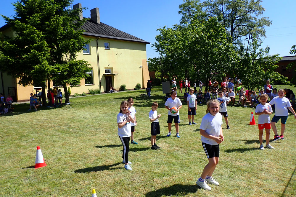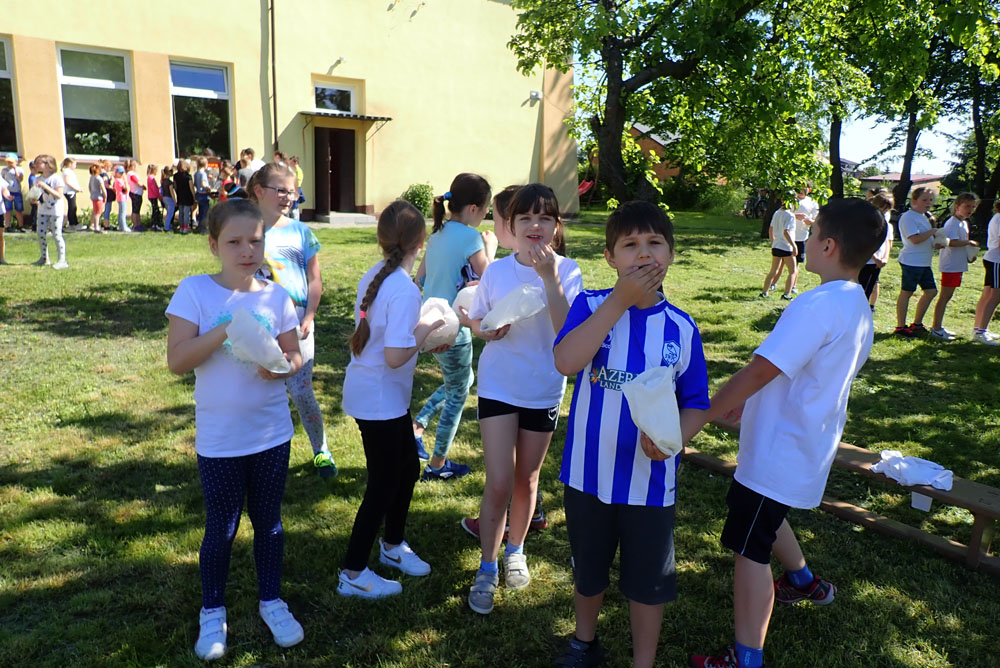 Tegoroczny Dzień Dziecka w naszej szkole obchodziliśmy na sportowo. W dniu sportu uczestniczyli wszyscy uczniowie oraz przedszkolaki. Dzieci klas 2-7 wzięły udział w konkursie, wchodzącym w skład programu "Trzymaj Formę", przygotowując przepyszne, zdrowe sałatki, które oceniały Pani dyrektor Aneta Piotrowska oraz Pani pielęgniarka. Młodsze klasy świetnie bawiły się rywalizując ze sobą w grze w "Łapaka", rzutach do celu, natomiast uczniowie z klas 4-7 pokonywali bieg sztafetowy oraz turniej gry w siatkówkę, przy krzykach i wiwatach tłumu zgromadzonych kibiców. Ponadto wszyscy uczestnicy brali udział w konkurencji przeciągania liny, która wywołała największe emocje i zadowolenie. Po zakończonych rozgrywkach zmęczeni, ale pełni entuzjazmu uczniowie naszej szkoły zostali poczęstowani gorącą kiełbasą, herbatą, popcornem. Posiłek połączony został wraz z degustacją sałatek zrobionych przez uczniów.