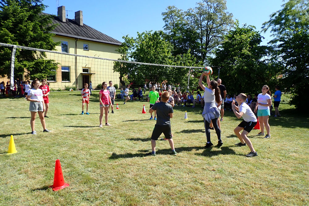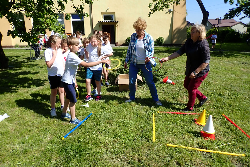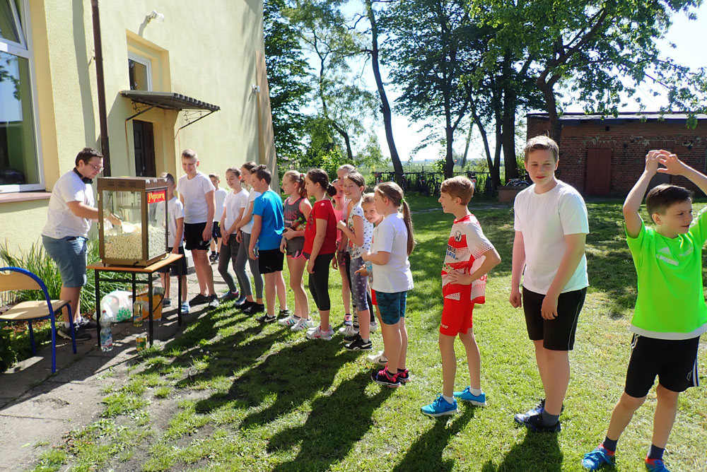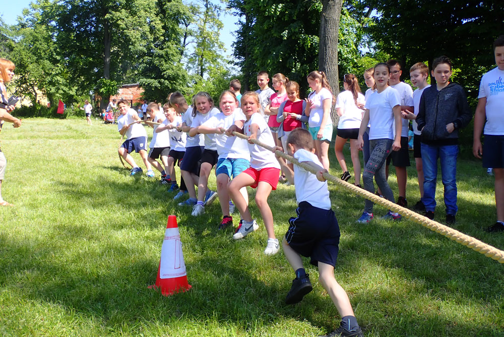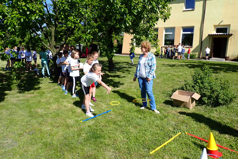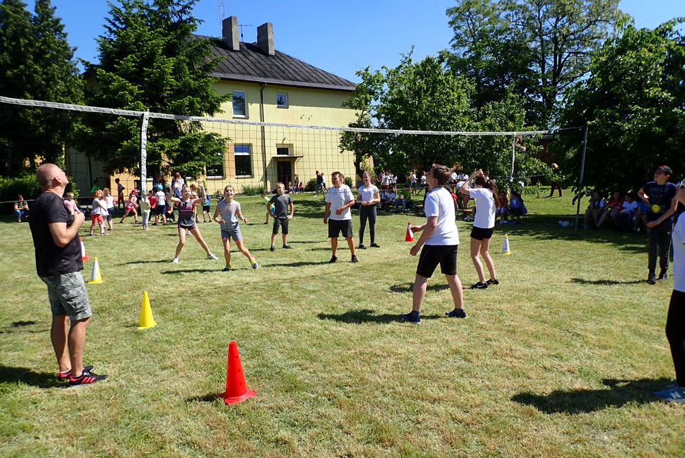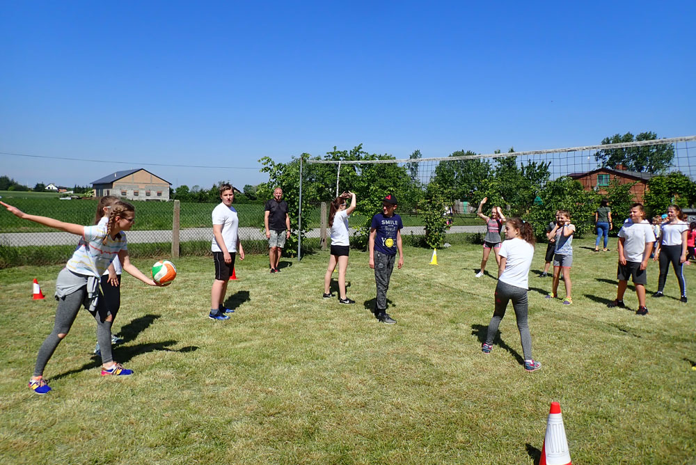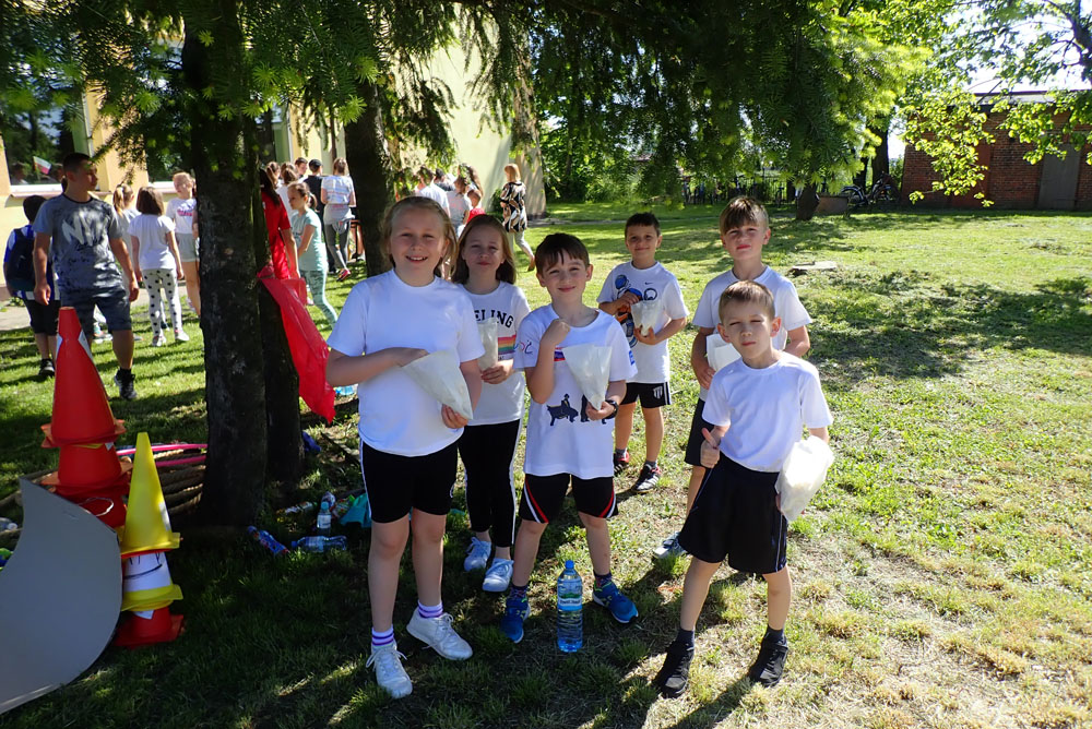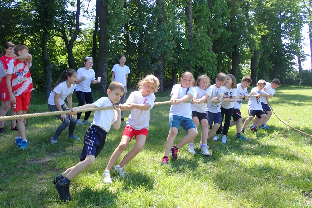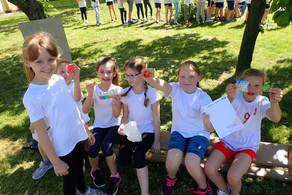 Tegoroczny Dzień Dziecka w naszej szkole obchodziliśmy na sportowo. W dniu sportu uczestniczyli wszyscy uczniowie oraz przedszkolaki. Dzieci klas 2-7 wzięły udział w konkursie, wchodzącym w skład programu "Trzymaj Formę", przygotowując przepyszne, zdrowe sałatki, które oceniały Pani dyrektor Aneta Piotrowska oraz Pani pielęgniarka. Młodsze klasy świetnie bawiły się rywalizując ze sobą w grze w "Łapaka", rzutach do celu, natomiast uczniowie z klas 4-7 pokonywali bieg sztafetowy oraz turniej gry w siatkówkę, przy krzykach i wiwatach tłumu zgromadzonych kibiców. Ponadto wszyscy uczestnicy brali udział w konkurencji przeciągania liny, która wywołała największe emocje i zadowolenie. Po zakończonych rozgrywkach zmęczeni, ale pełni entuzjazmu uczniowie naszej szkoły zostali poczęstowani gorącą kiełbasą, herbatą, popcornem. Posiłek połączony został wraz z degustacją sałatek zrobionych przez uczniów.