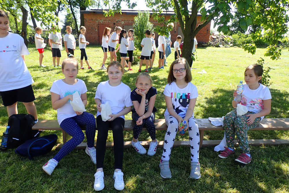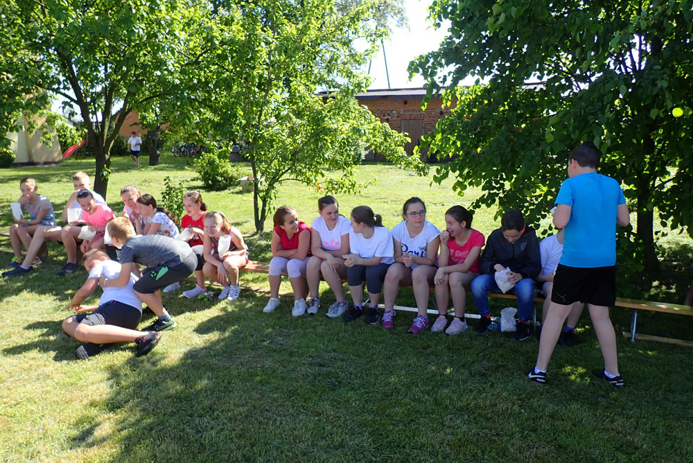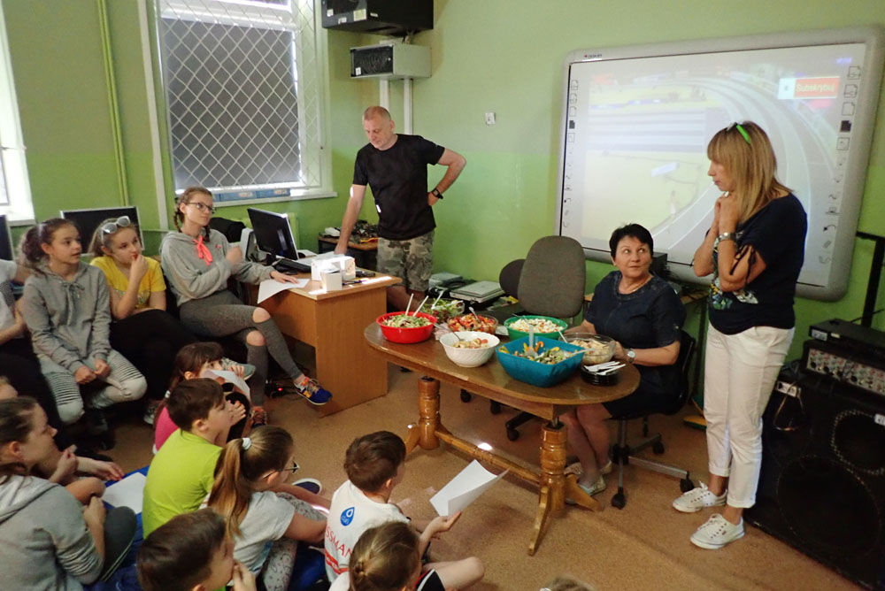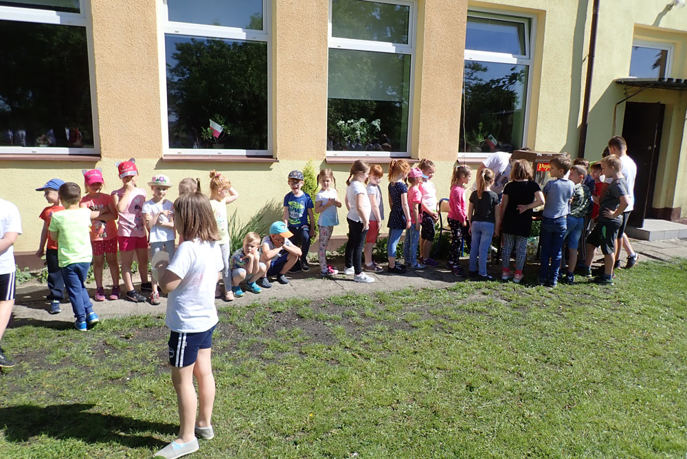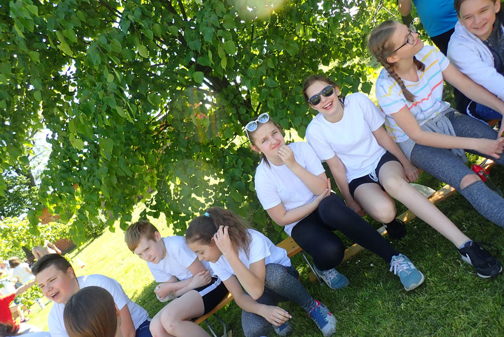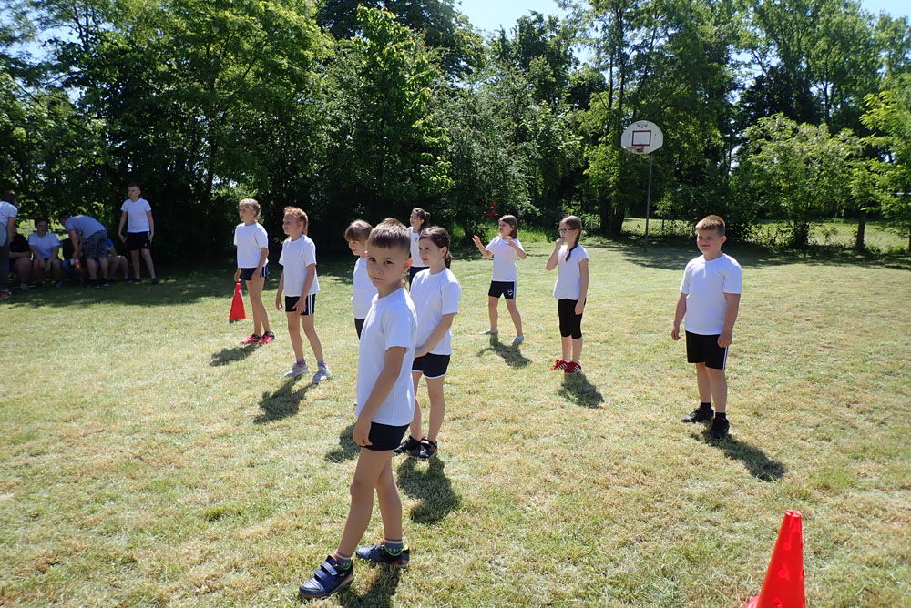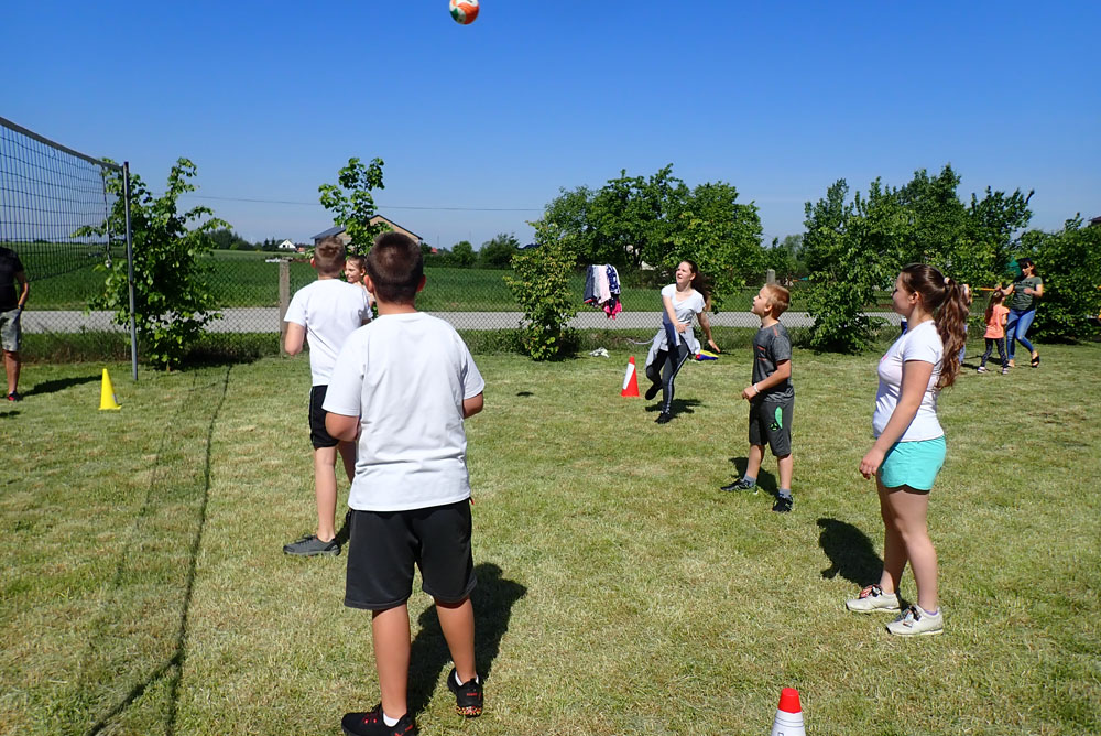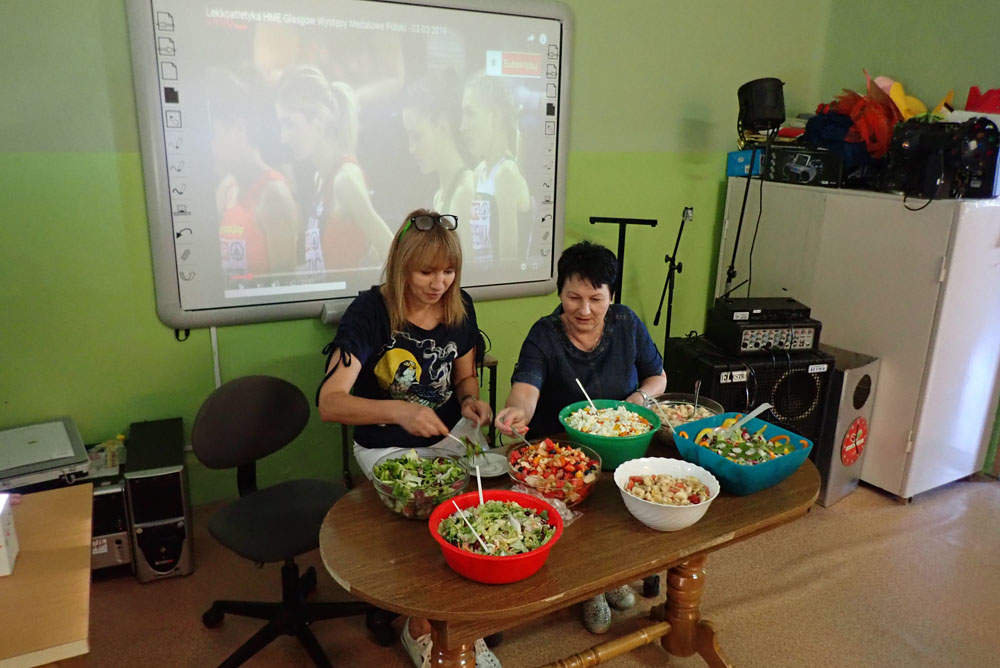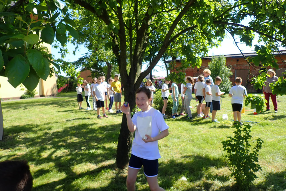 Tegoroczny Dzień Dziecka w naszej szkole obchodziliśmy na sportowo. W dniu sportu uczestniczyli wszyscy uczniowie oraz przedszkolaki. Dzieci klas 2-7 wzięły udział w konkursie, wchodzącym w skład programu "Trzymaj Formę", przygotowując przepyszne, zdrowe sałatki, które oceniały Pani dyrektor Aneta Piotrowska oraz Pani pielęgniarka. Młodsze klasy świetnie bawiły się rywalizując ze sobą w grze w "Łapaka", rzutach do celu, natomiast uczniowie z klas 4-7 pokonywali bieg sztafetowy oraz turniej gry w siatkówkę, przy krzykach i wiwatach tłumu zgromadzonych kibiców. Ponadto wszyscy uczestnicy brali udział w konkurencji przeciągania liny, która wywołała największe emocje i zadowolenie. Po zakończonych rozgrywkach zmęczeni, ale pełni entuzjazmu uczniowie naszej szkoły zostali poczęstowani gorącą kiełbasą, herbatą, popcornem. Posiłek połączony został wraz z degustacją sałatek zrobionych przez uczniów.