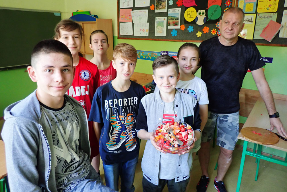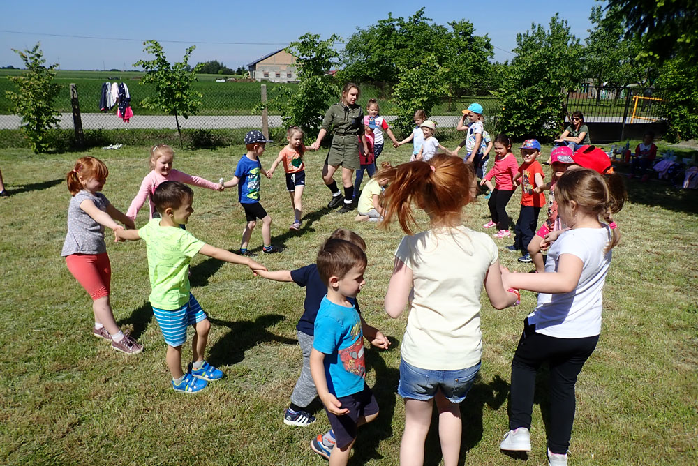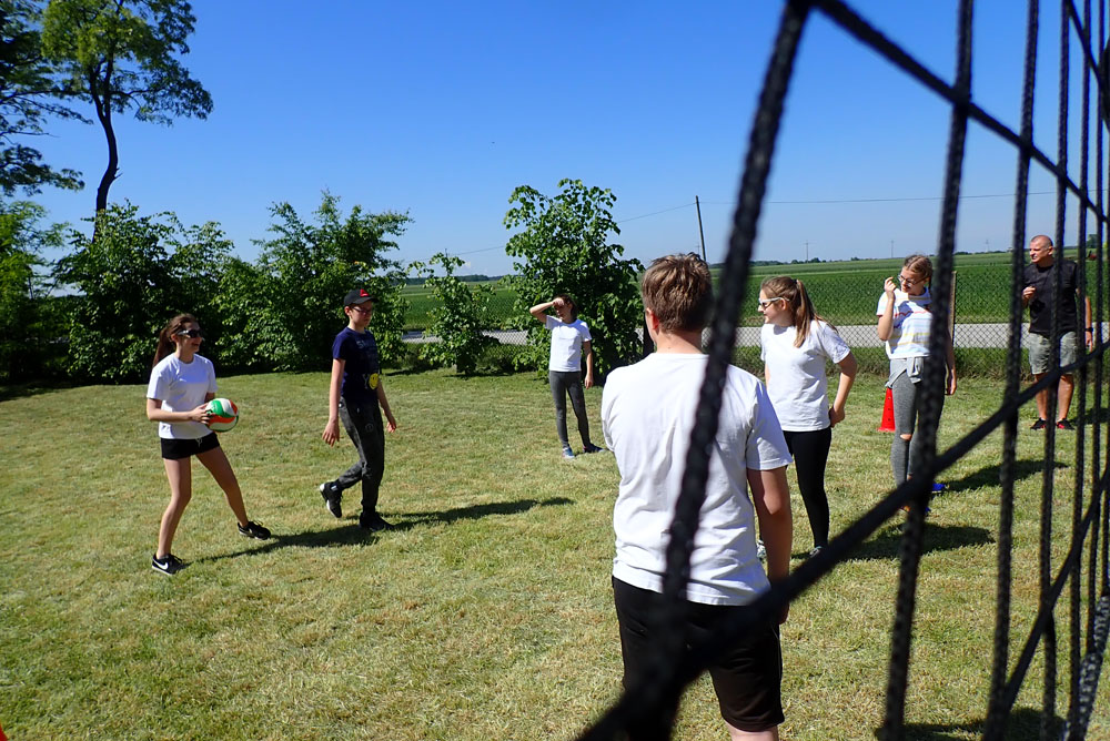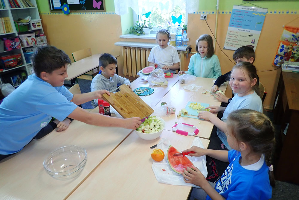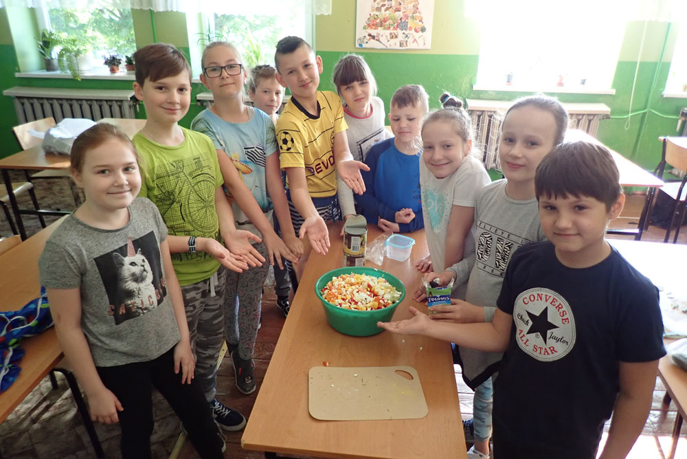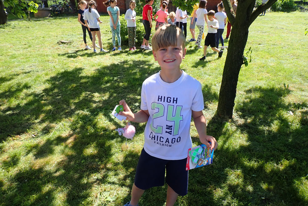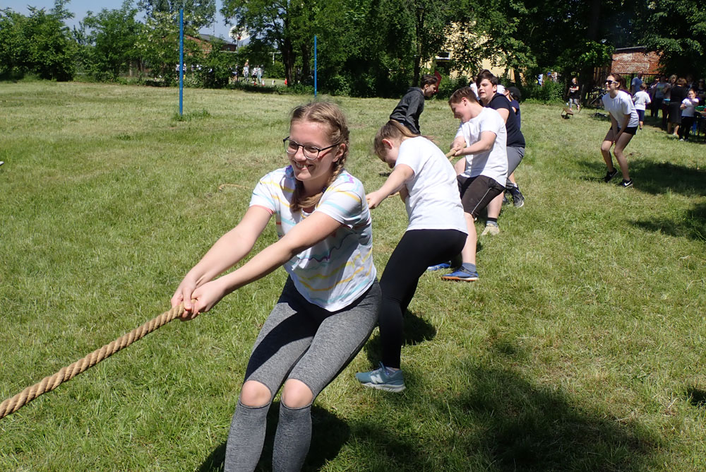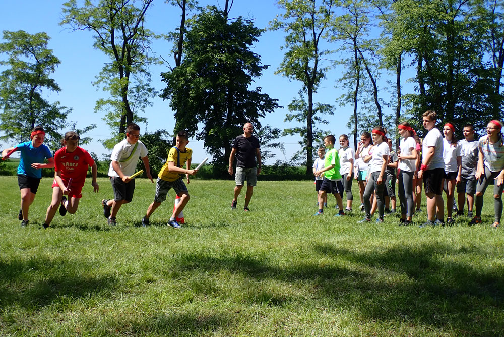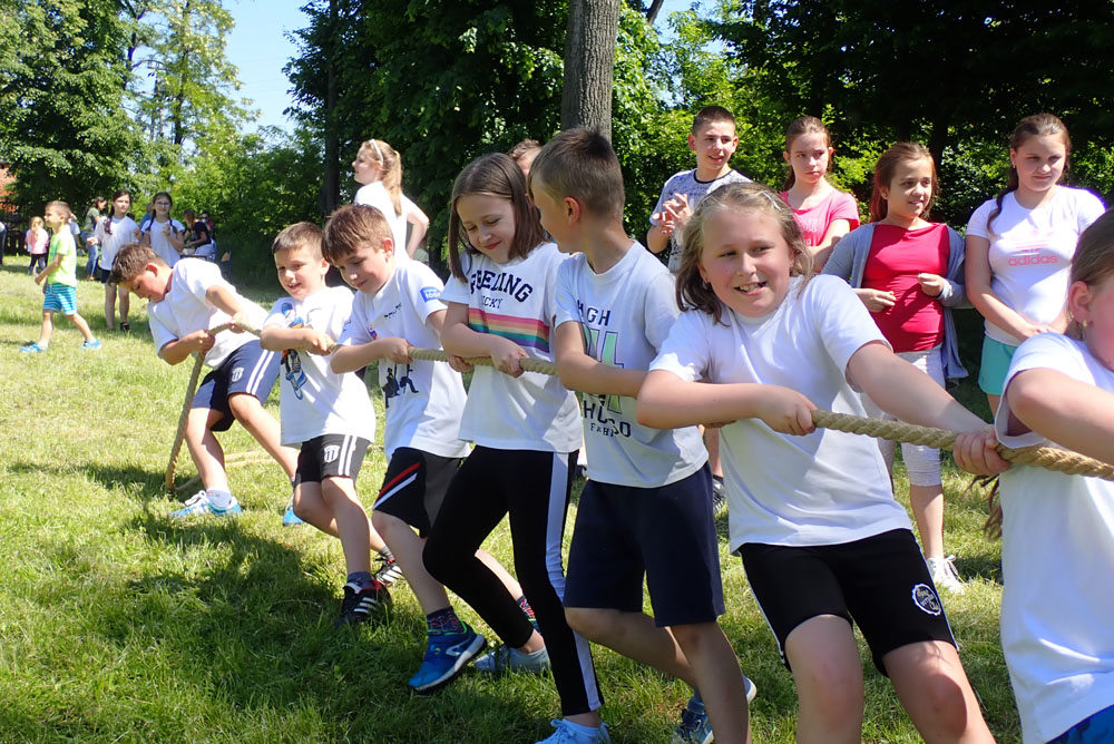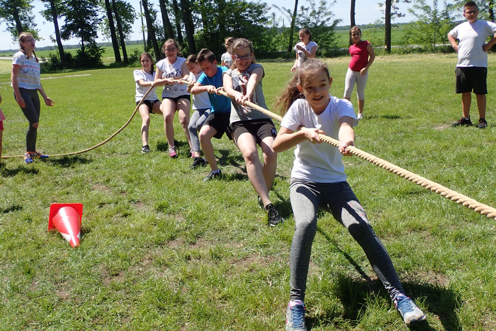 Tegoroczny Dzień Dziecka w naszej szkole obchodziliśmy na sportowo. W dniu sportu uczestniczyli wszyscy uczniowie oraz przedszkolaki. Dzieci klas 2-7 wzięły udział w konkursie, wchodzącym w skład programu "Trzymaj Formę", przygotowując przepyszne, zdrowe sałatki, które oceniały Pani dyrektor Aneta Piotrowska oraz Pani pielęgniarka. Młodsze klasy świetnie bawiły się rywalizując ze sobą w grze w "Łapaka", rzutach do celu, natomiast uczniowie z klas 4-7 pokonywali bieg sztafetowy oraz turniej gry w siatkówkę, przy krzykach i wiwatach tłumu zgromadzonych kibiców. Ponadto wszyscy uczestnicy brali udział w konkurencji przeciągania liny, która wywołała największe emocje i zadowolenie. Po zakończonych rozgrywkach zmęczeni, ale pełni entuzjazmu uczniowie naszej szkoły zostali poczęstowani gorącą kiełbasą, herbatą, popcornem. Posiłek połączony został wraz z degustacją sałatek zrobionych przez uczniów.