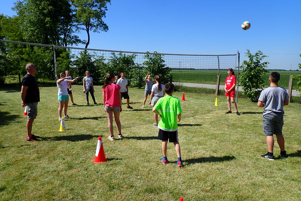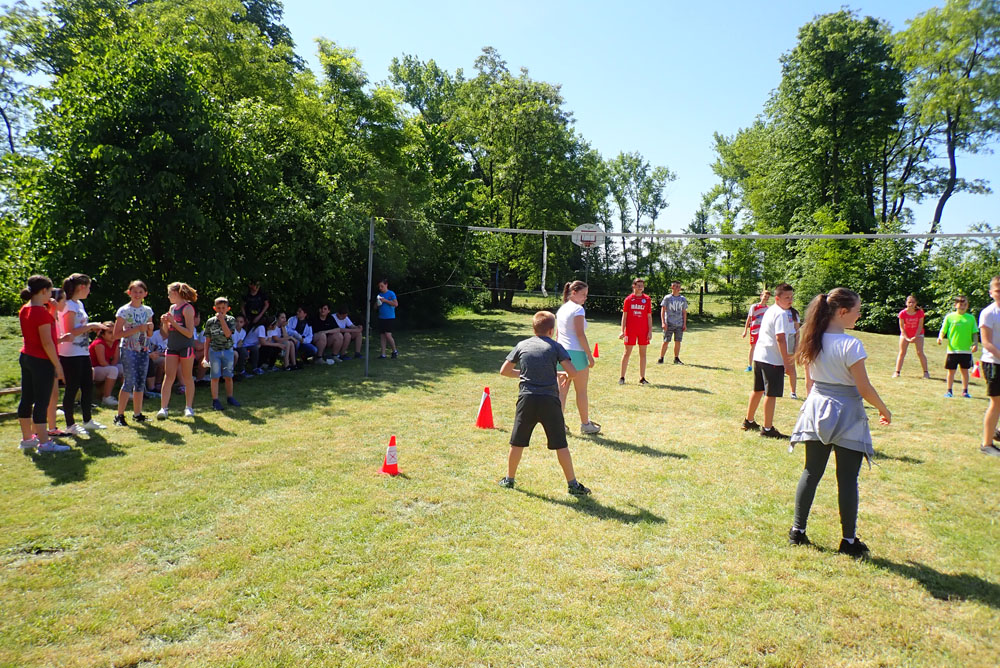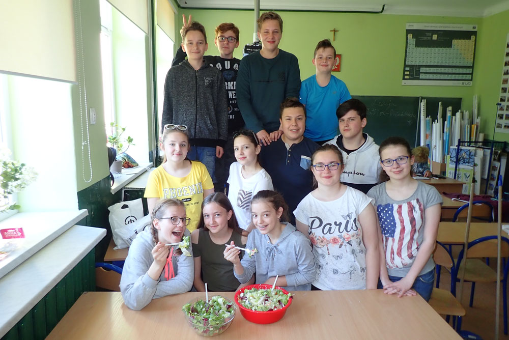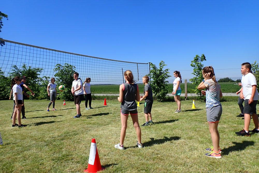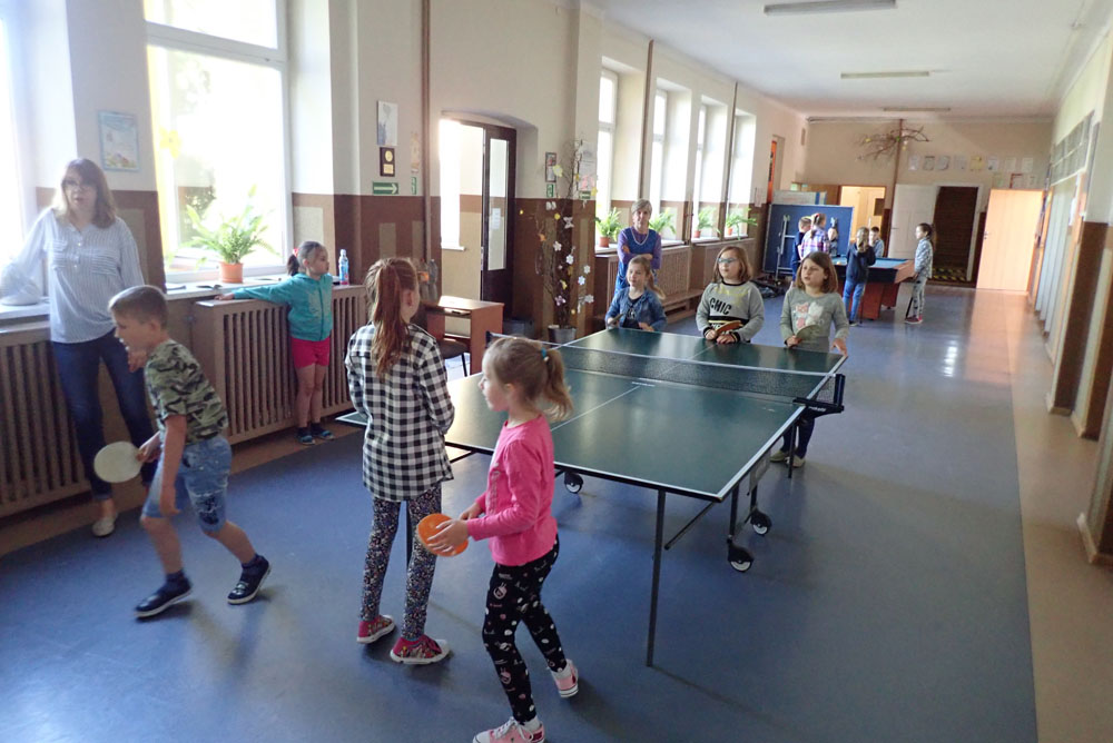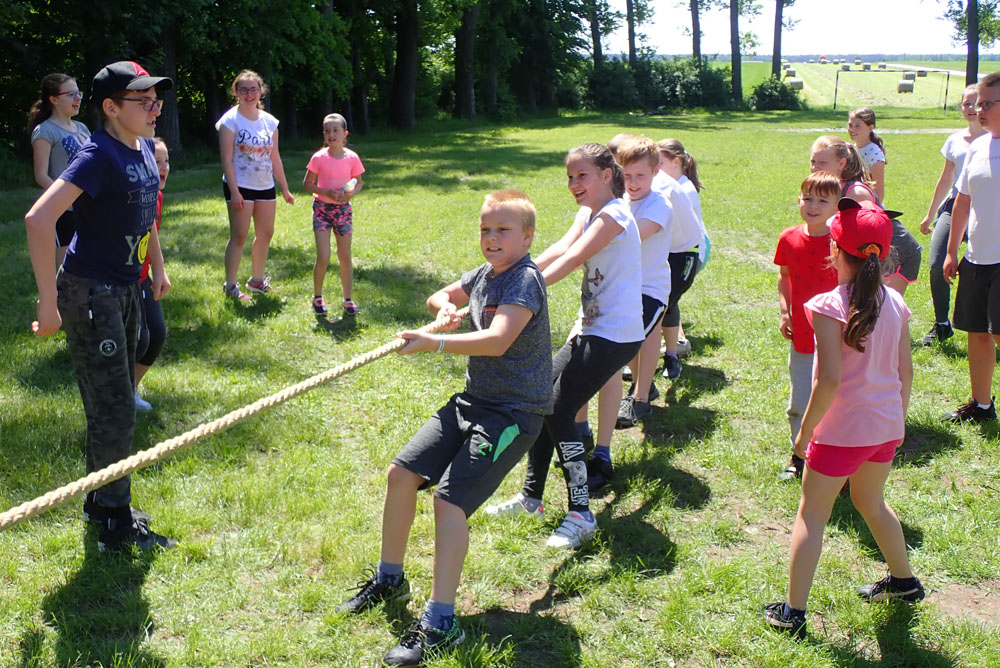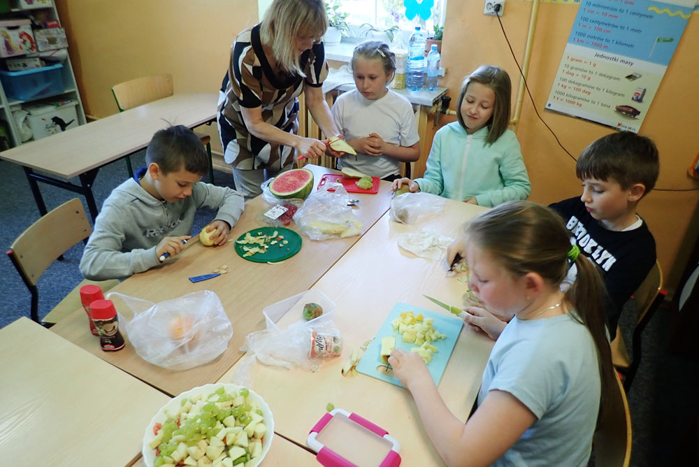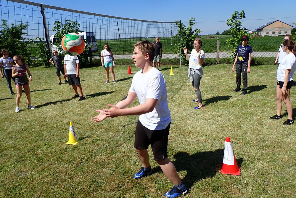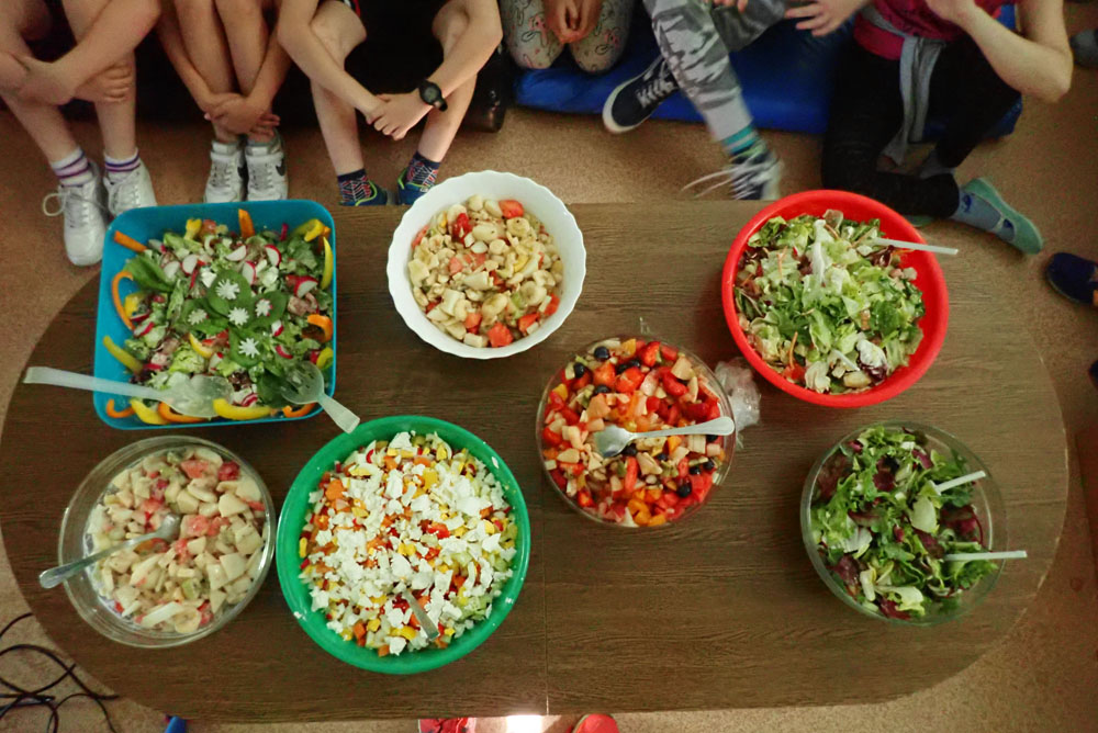 Tegoroczny Dzień Dziecka w naszej szkole obchodziliśmy na sportowo. W dniu sportu uczestniczyli wszyscy uczniowie oraz przedszkolaki. Dzieci klas 2-7 wzięły udział w konkursie, wchodzącym w skład programu "Trzymaj Formę", przygotowując przepyszne, zdrowe sałatki, które oceniały Pani dyrektor Aneta Piotrowska oraz Pani pielęgniarka. Młodsze klasy świetnie bawiły się rywalizując ze sobą w grze w "Łapaka", rzutach do celu, natomiast uczniowie z klas 4-7 pokonywali bieg sztafetowy oraz turniej gry w siatkówkę, przy krzykach i wiwatach tłumu zgromadzonych kibiców. Ponadto wszyscy uczestnicy brali udział w konkurencji przeciągania liny, która wywołała największe emocje i zadowolenie. Po zakończonych rozgrywkach zmęczeni, ale pełni entuzjazmu uczniowie naszej szkoły zostali poczęstowani gorącą kiełbasą, herbatą, popcornem. Posiłek połączony został wraz z degustacją sałatek zrobionych przez uczniów.
