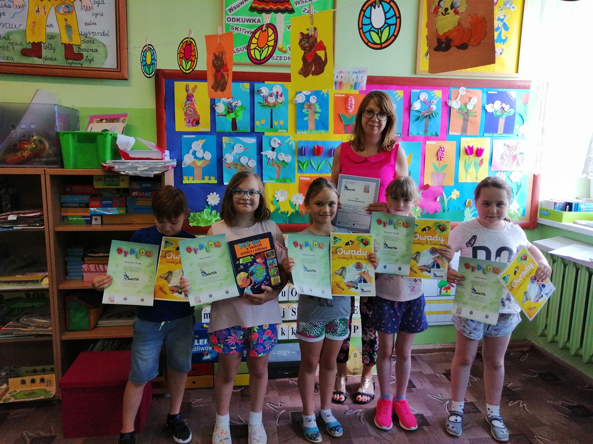 Uczniowie z klas I-III po raz drugi wzięli udział w Ogólnopolskim Konkursie Nauk Przyrodniczych „ŚWIETLIK” i po raz drugi sięgnęli po najwyższe nagrody. Laureatkami  nagród głównych zostały MAJA KĘDRA z kl. I oraz AMELIA KAŹMIERCZAK z kl. II. Wyróżnienia przyznano: Agacie Burdzie, Martynie Bijoch, Nikoli Pacześ i Wojciechowi Żerkowi z kl. I oraz Zofii Hejniak z kl. II.