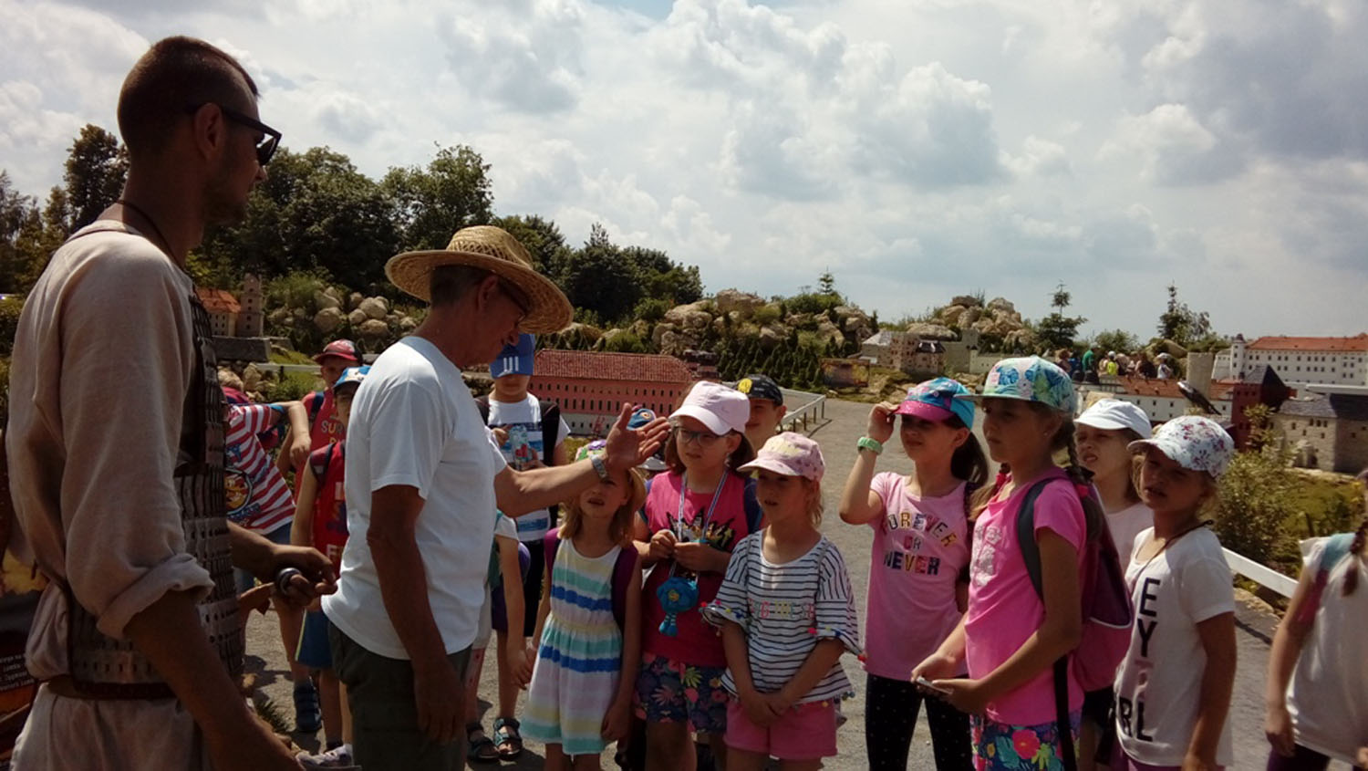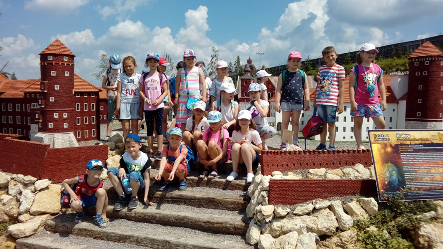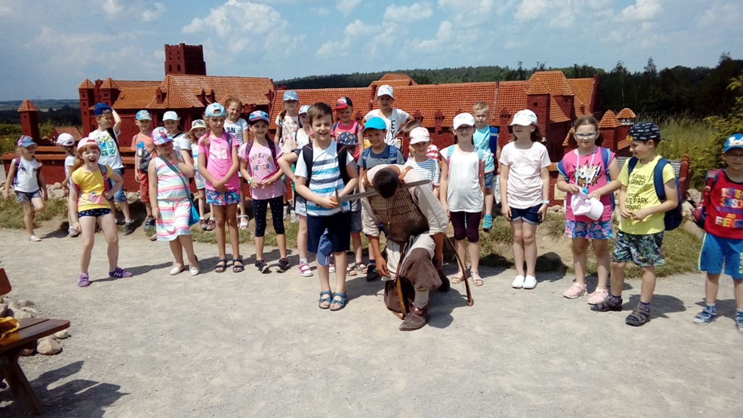 Kolejną atrakcją był Park Miniatur. Uczniowie mieli okazję zobaczyć najważniejsze zabytki Polski w czasie jednej wycieczki. Przewodnik opowiadał ciekawe legendy dotyczące m.in. zamku w Malborku czy Zamku Królewskiego w Warszawie. W czasie wyprawy po Polsce spotkali rycerza ubranego w tradycyjny strój i prezentującego ówczesną broń.