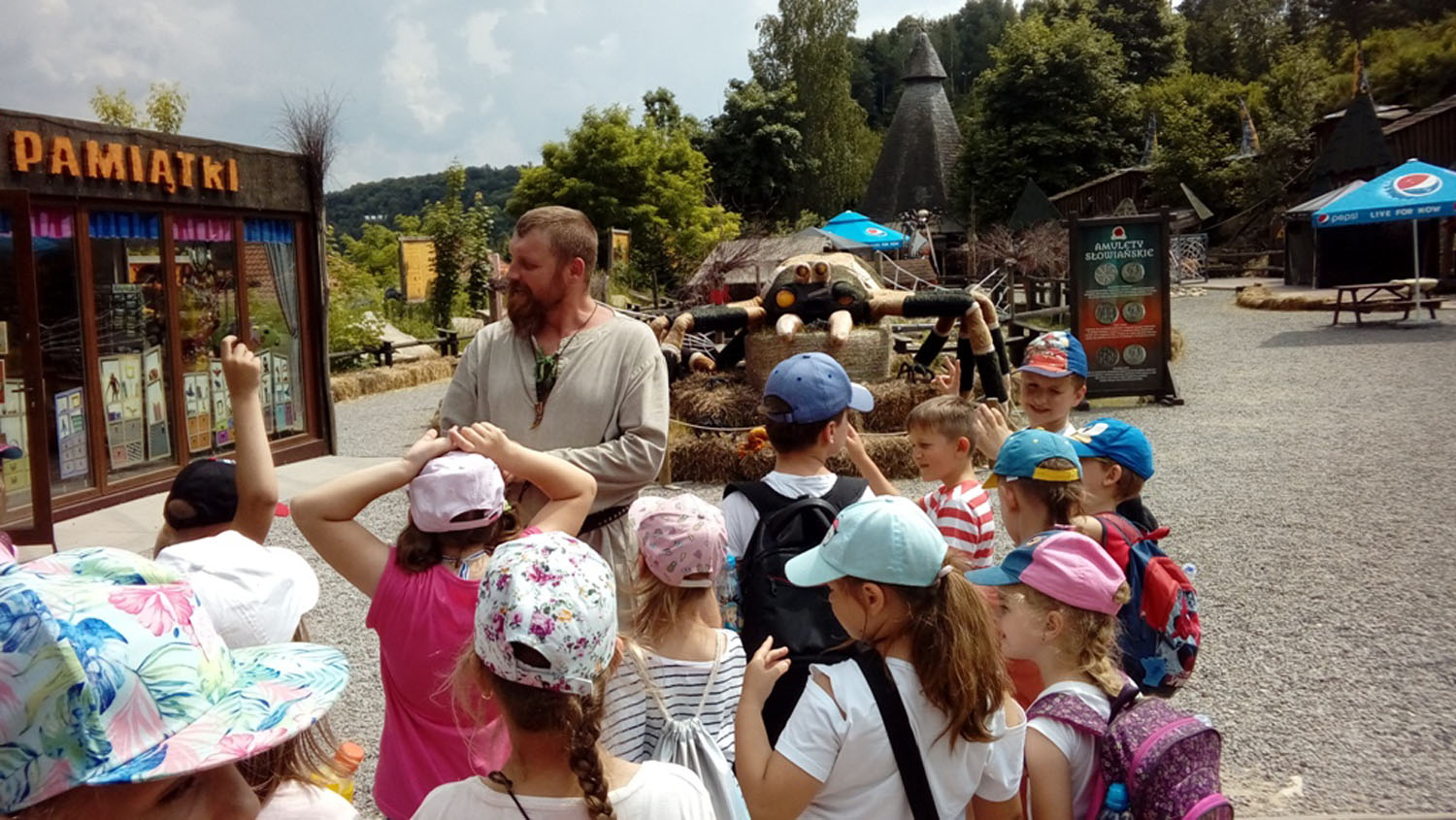 Następnie wszyscy udali się do magicznego miejsca - Sabatówki. Tam powitał wszystkich Słowianin, który poddał uczestników wycieczki próbie odwagi. Musieli przejść przez tunel strachu. Wszyscy wykazali się niezwykłą odwagą i w nagrodę zostali oznaczeni magicznym stemplem przez wiedźmę Hogatę.