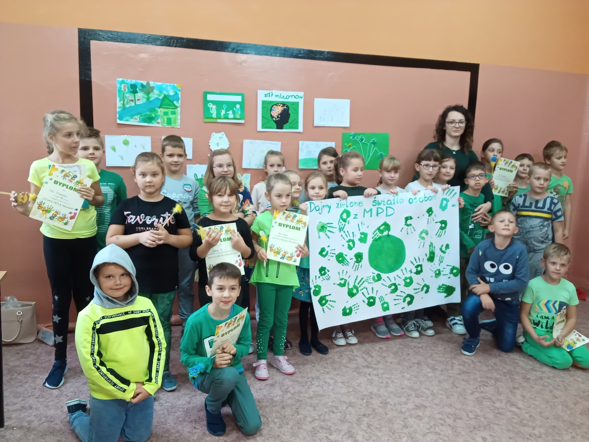 Podczas zajęć nastąpiło rozstrzygnięcie konkursu plastycznego „Zieloną kreską malowane” organizowane z okazji Światowego Dnia MPD.