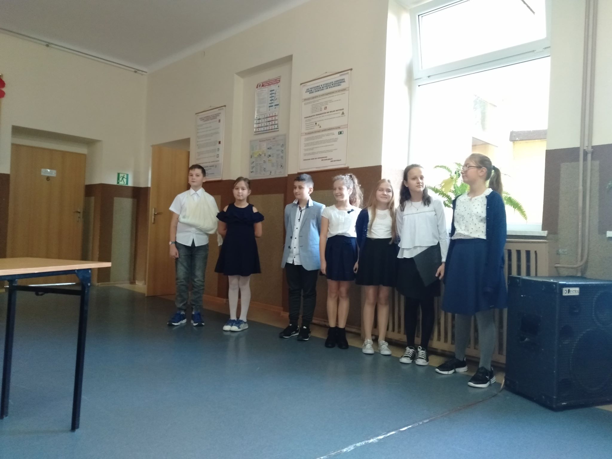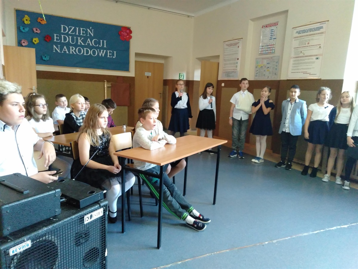 11.10.2019 r. w naszej szkole odbyła się uroczystość z okazji dnia Edukacji Narodowej, potocznie zwana Dniem Nauczyciela. Uczniowie przygotowali program artystyczny podczas którego pięknie recytowali wiersze i śpiewali piosenki. Dodatkowym zaskoczeniem, jak i zarazem prezentem, dla nauczycieli była ściana z wizerunkami nauczycieli, namalowanych przez uczniów. Następnie Pani Dyrektor nagrodziła słownie pracowników za osiągnięcia dydaktyczne oraz zaangażowanie w życie szkoły.