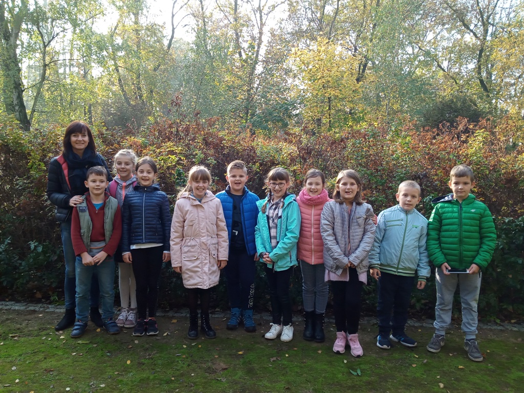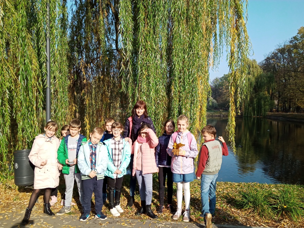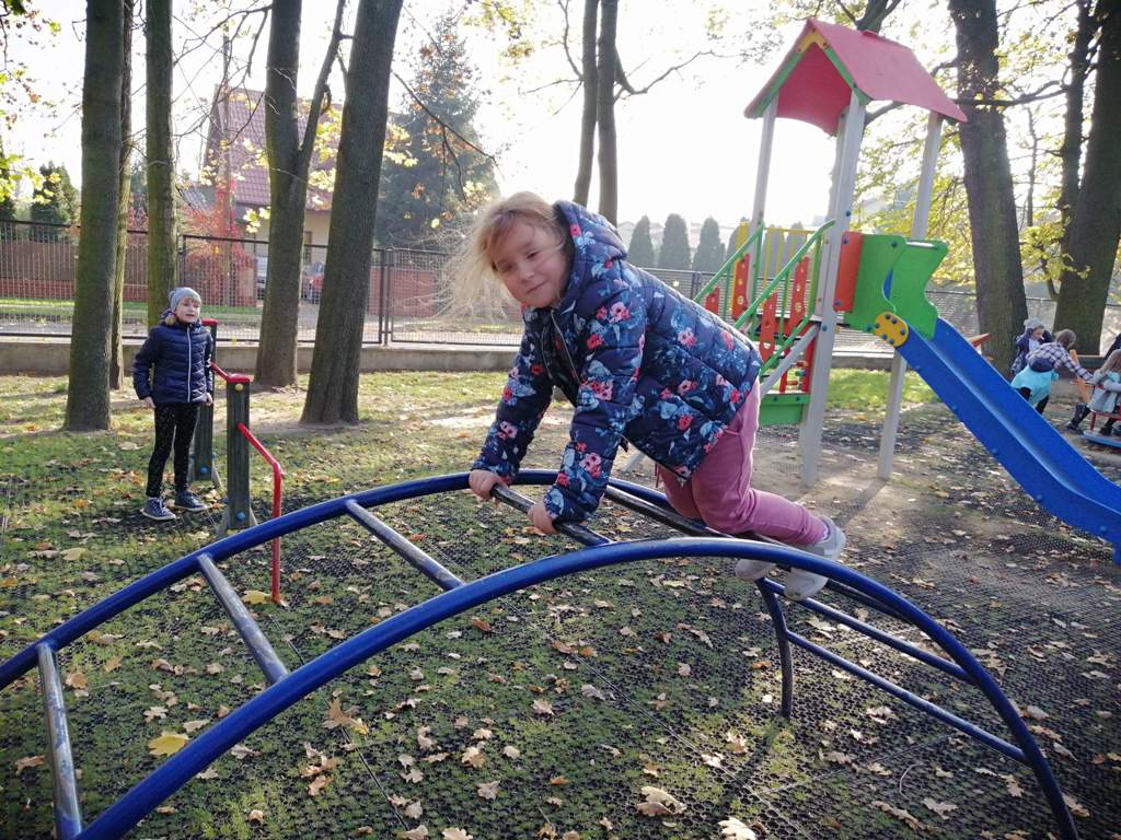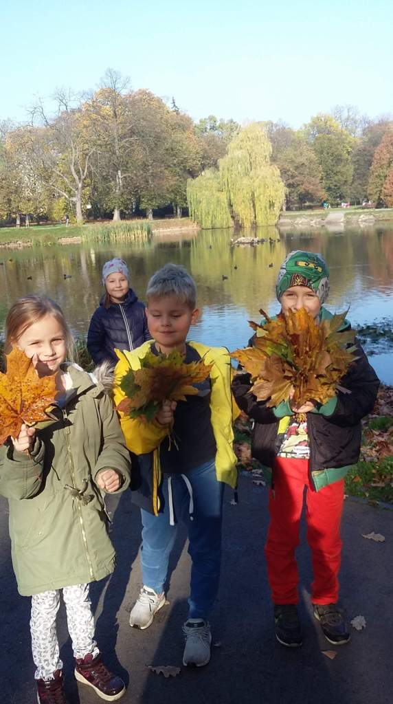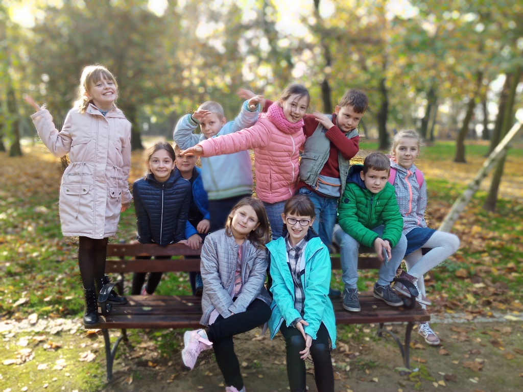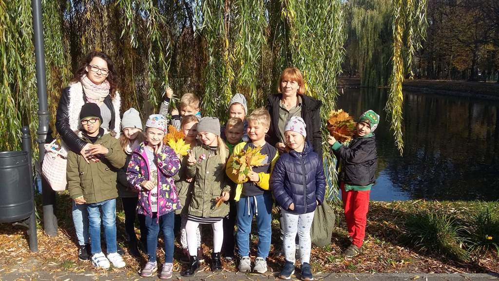 Po spektaklu wszyscy udali się na spacer do parku im. ks. Józefa Poniatowskiego. Jesienna sceneria zachwycała swoim pięknem i różnorodnością barw. Uczniowie świetnie bawili się w stosach liści leżących pod drzewami oraz na placu zabaw znajdującym się na terenie parku.