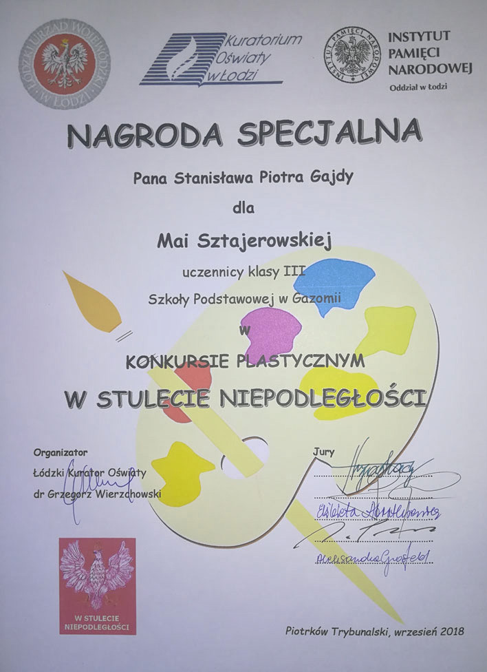laureatek konkursu plastycznego „W stulecie niepodległości” zorganizowanego