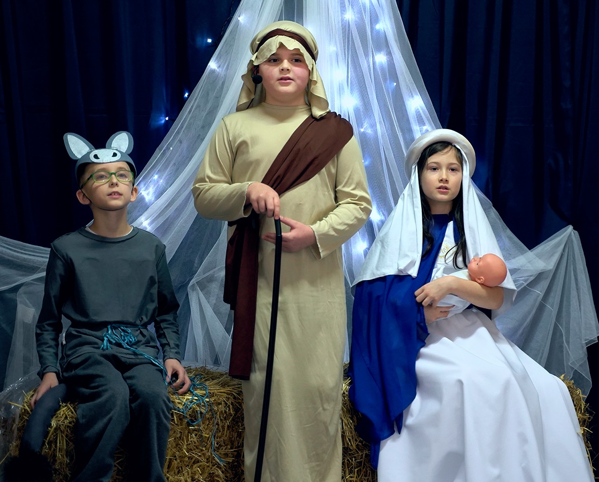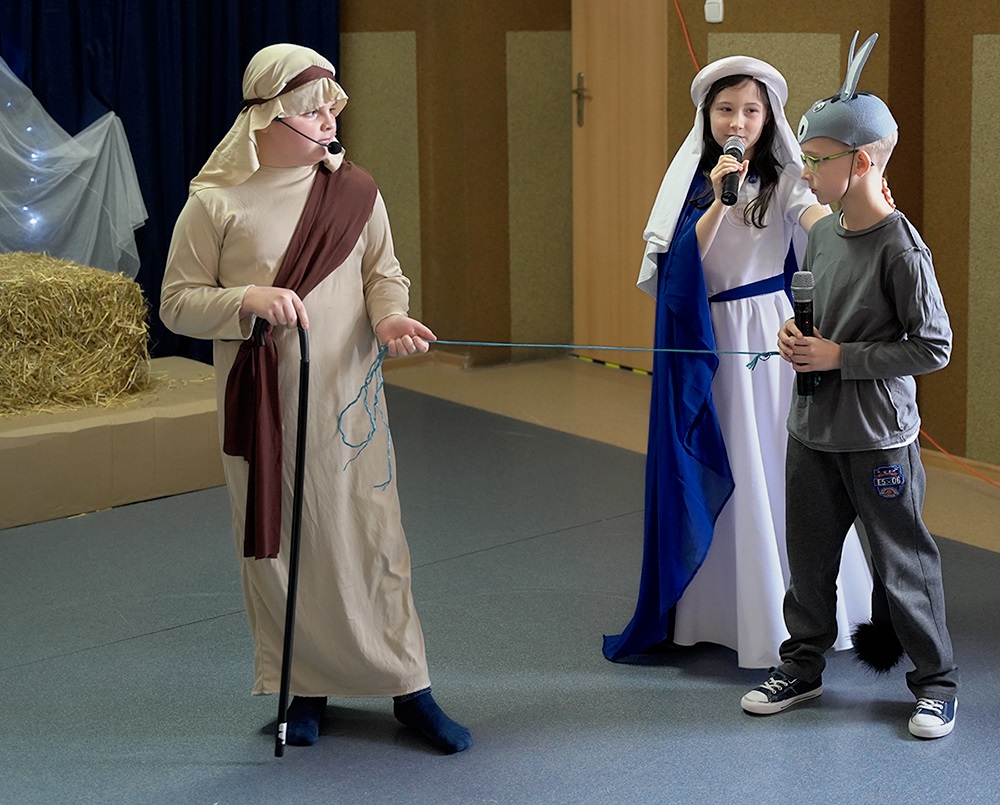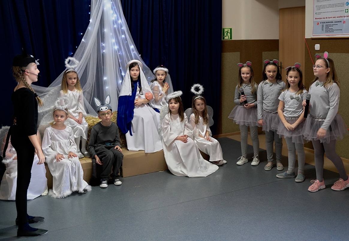 To była prawdziwa uczta dla ducha: młodzi aktorzy z ogromnym przeżyciem wprowadzili całą szkolną społeczność w klimat ŚWIĄT BOŻEGO NARODZENIA.