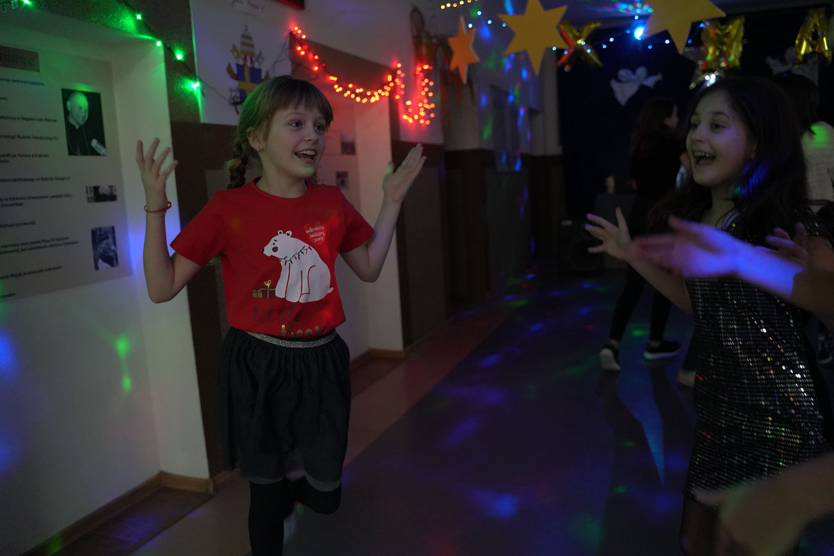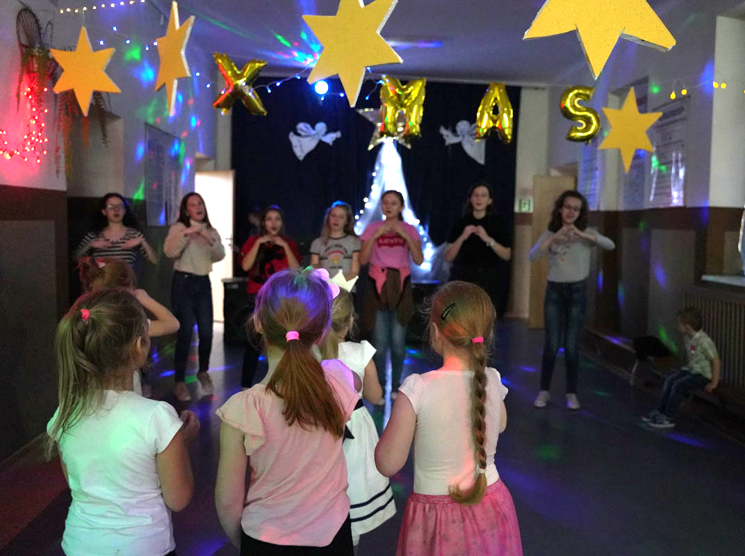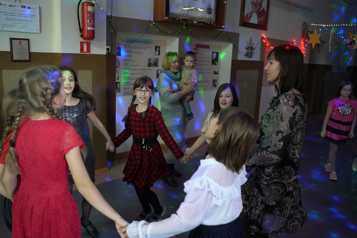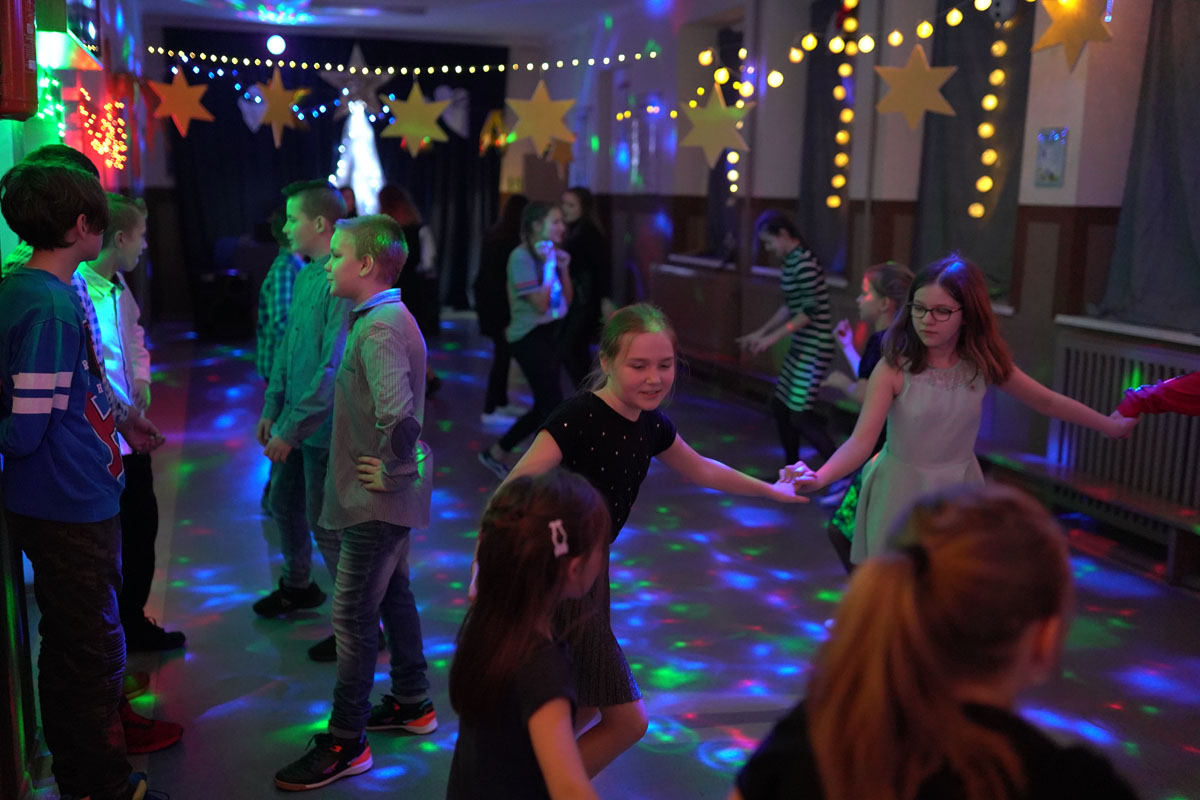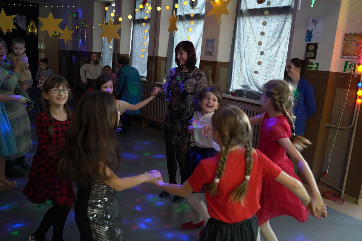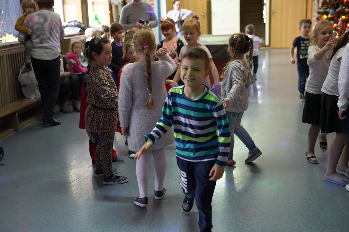 Rokrocznie w naszej szkole przyjęło się, że tuż przed feriami zimowymi, bawimy się przy gorących rytmach muzyki,na zabawie choinkowej. I takiej tradycji nie zabrakło i tego roku. Wspólne świętowanie rozpoczęły jasełka przedstawione przez uczniów naszej szkoły, do których sumiennie przygotowywali się wraz z opiekunami już od kilku tygodni. A zaraz po nich tańce rozpoczęli najmłodsi tj. klasy 0-3.