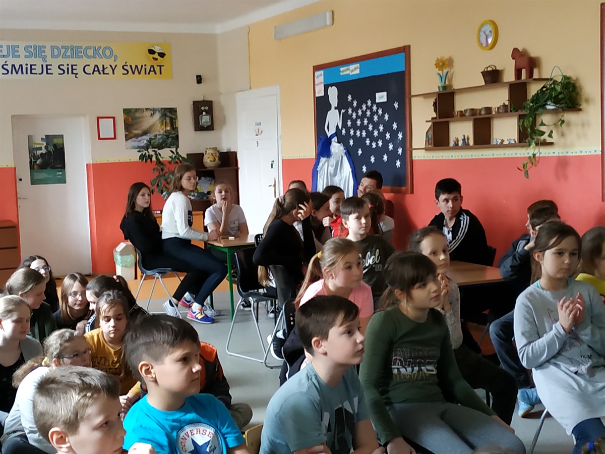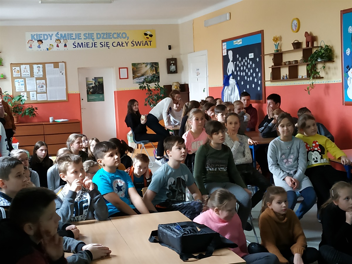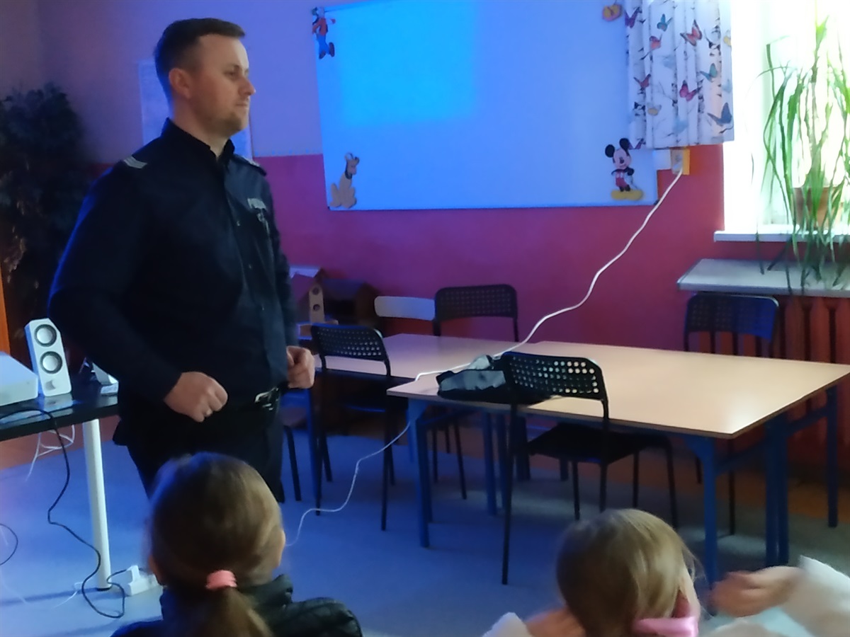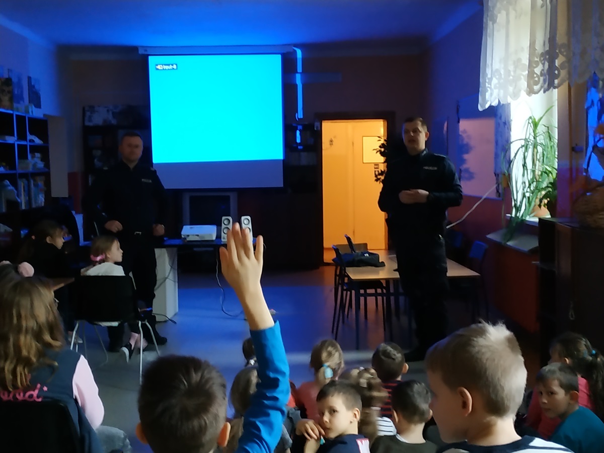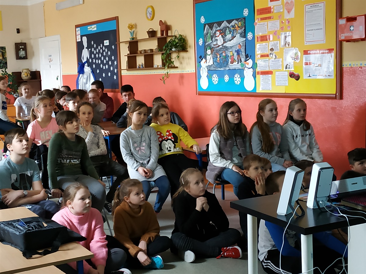 Jak być bezpiecznym na drodze i w internecie? - te tematy zostały poruszone przez Policjantów z Komendy Policji w Wolborzu, młodszego aspiranta - Adama Szmydta i sierżanta sztabowego - Łukasza Pirka, na spotkaniu z uczniami naszej szkoły. Była pogadanka, były filmy edukacyjne, było zainteresowanie wszystkich uczestników. Dziękujemy!!!