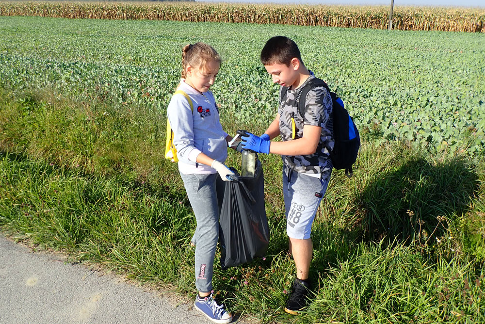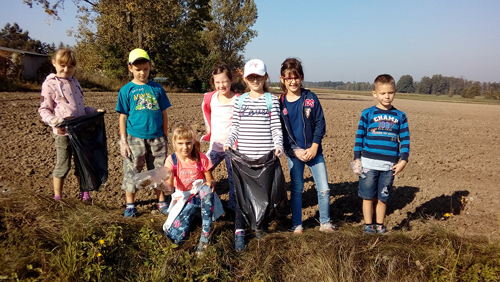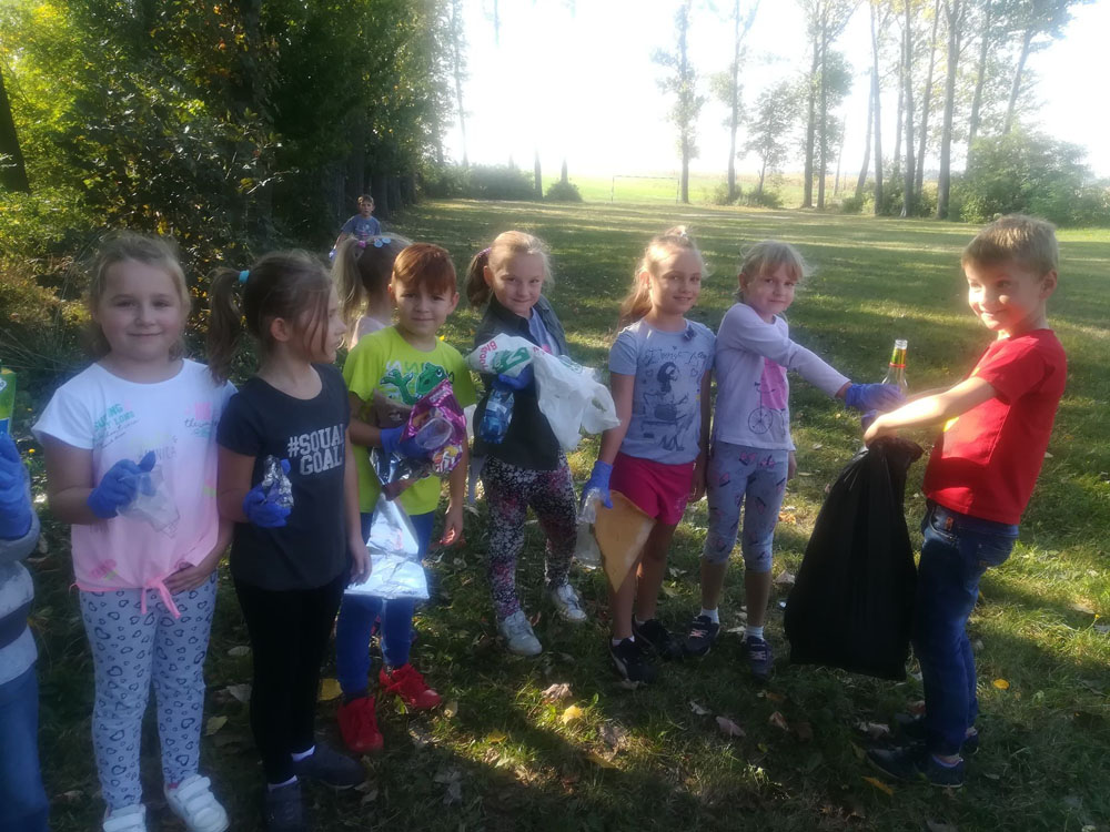 na śmieci. Najmłodsi podopieczni sprzątali teren należący do szkoły, natomiast klasy III-VIII wraz