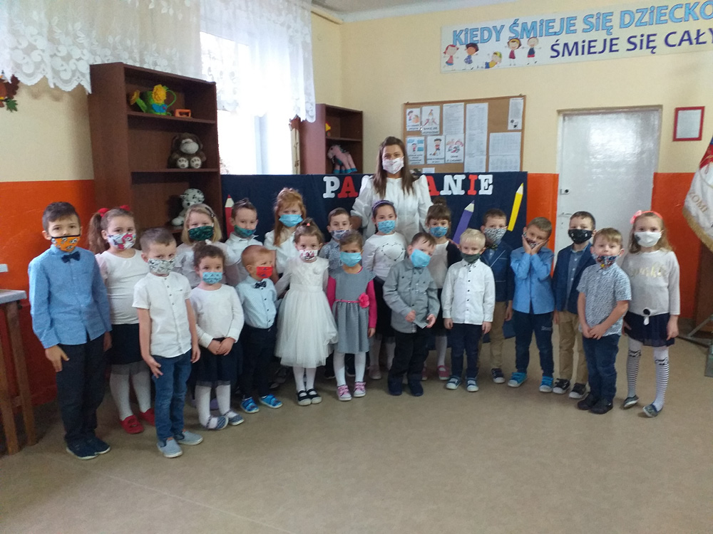 Ze względu na panującą sytuację w uroczystości udział wzięli Pani dyrektor Aneta Piotrowska oraz nauczyciel świetlicy.